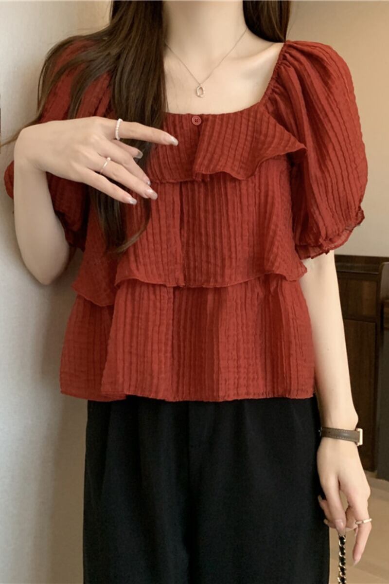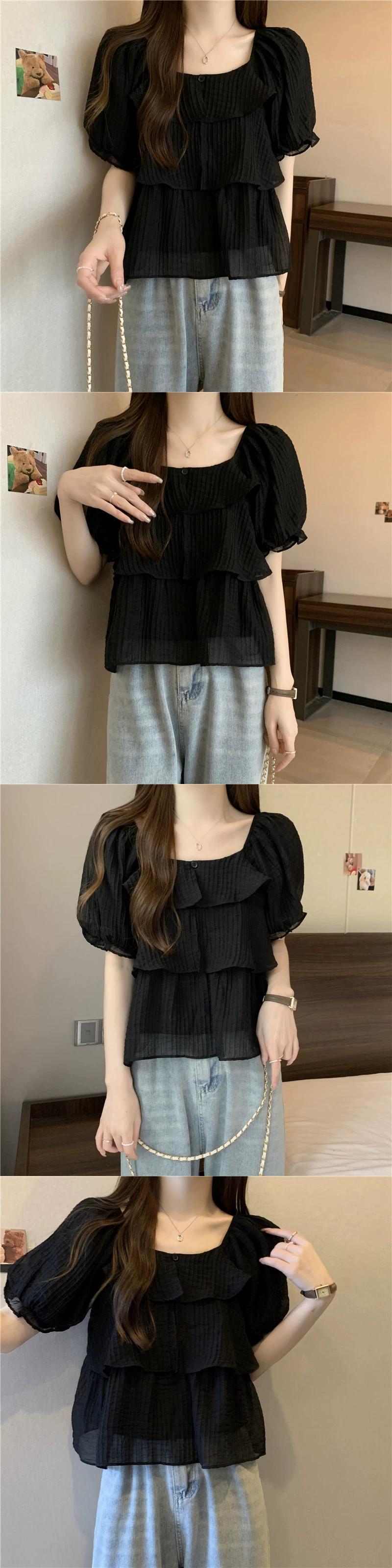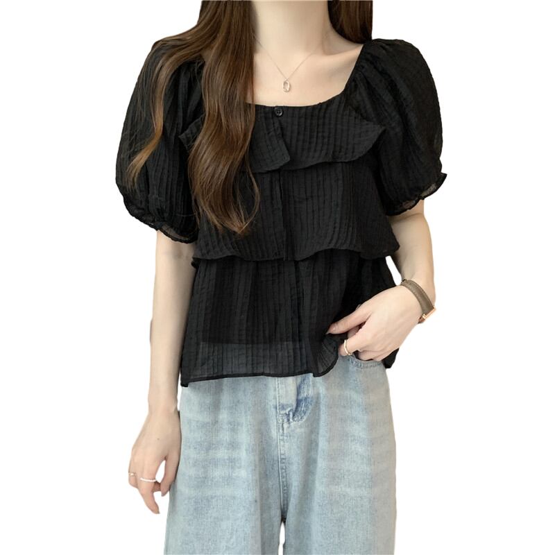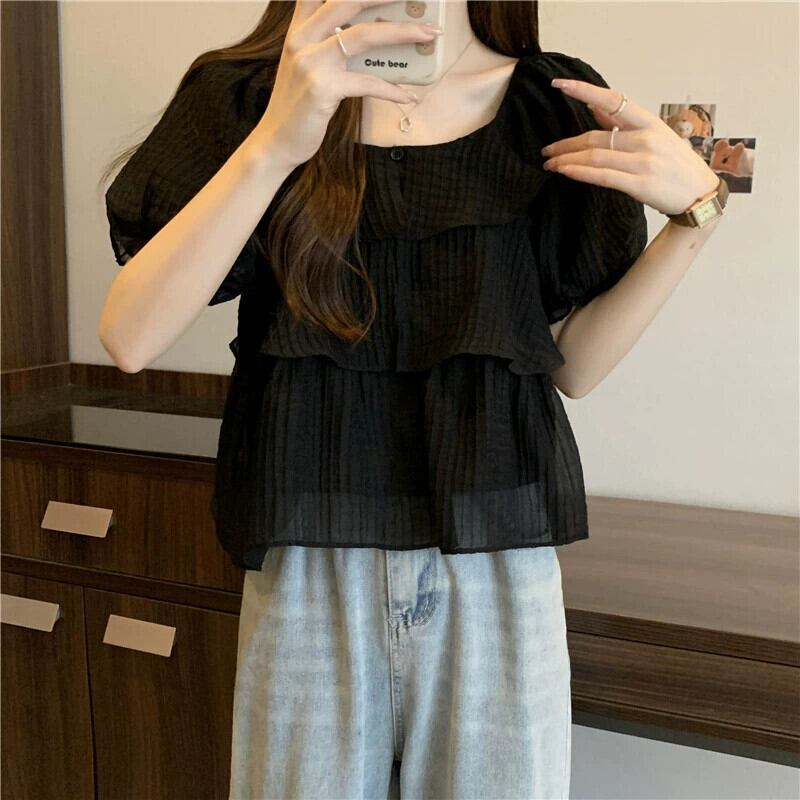 プラスサイズの婦人服 2023 ファットシスター夏新デザインファッションオールマッチ薄型半袖ドールシャツトップ 大きめサイズ サマー 夏物 8884147122455857