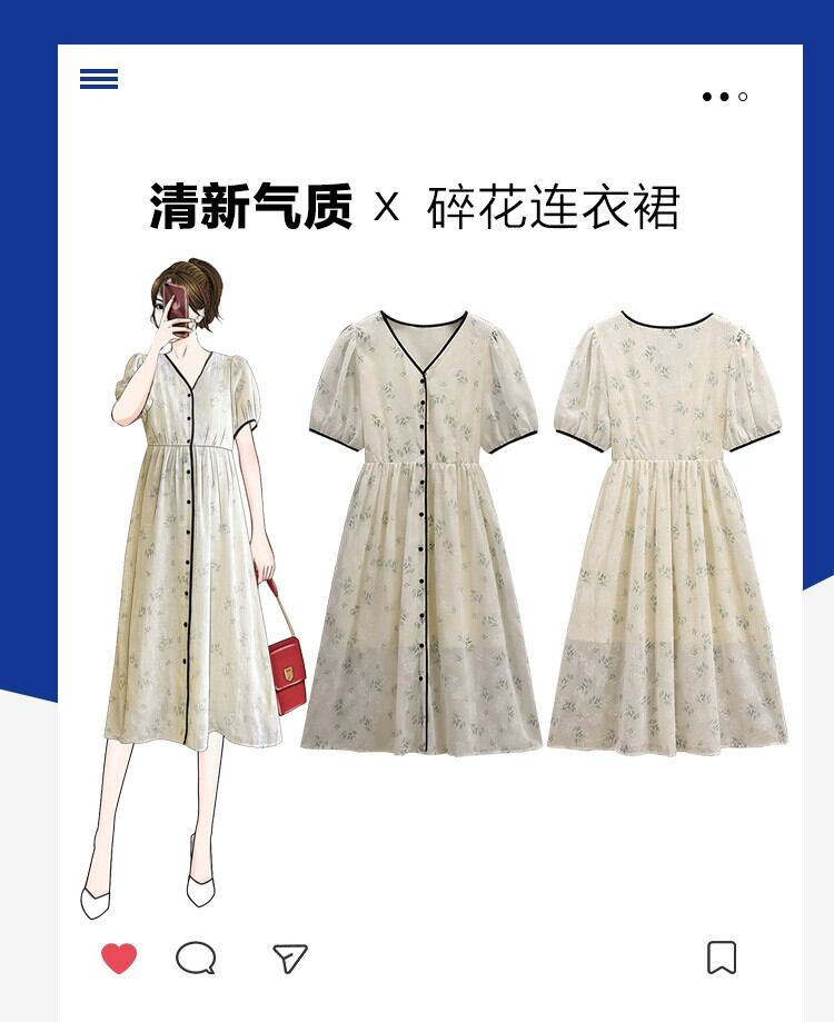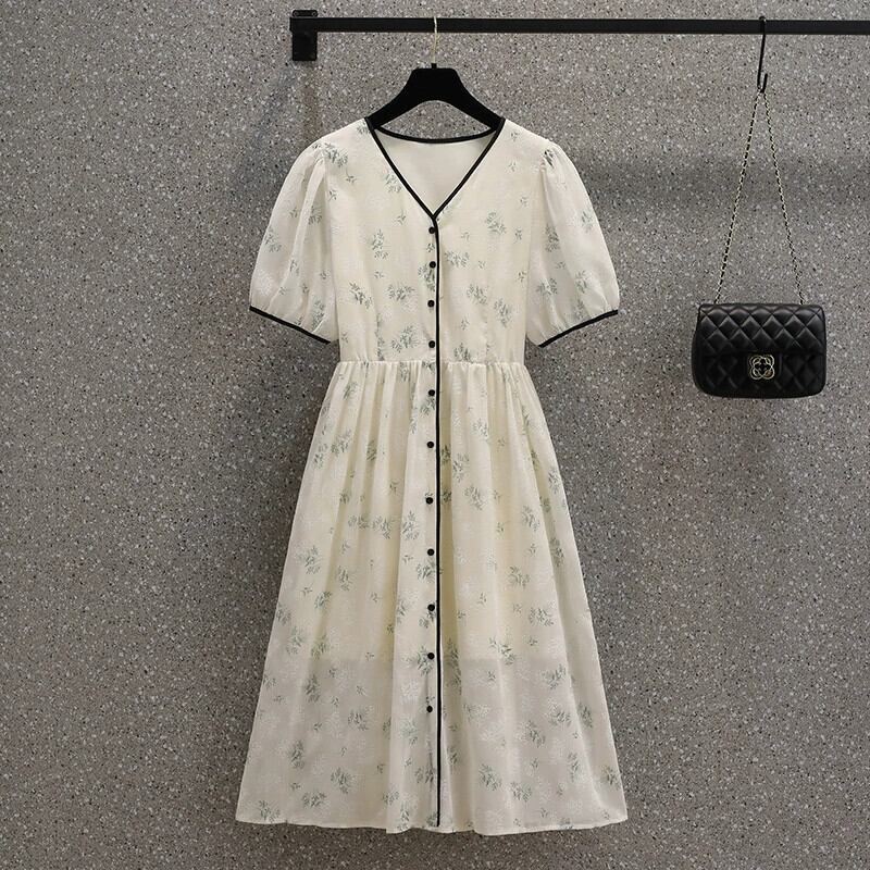 プラスサイズの婦人服 2023 脂肪姉妹夏の新しいフランスの気質 a ラインスカート小花柄シフォンカーディガンドレス 大きめサイズ サマー 夏物 Aライン 8884118745850482