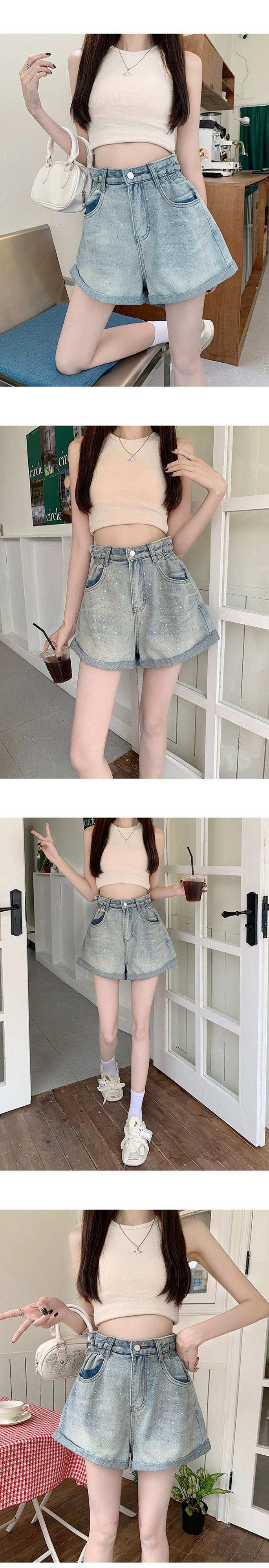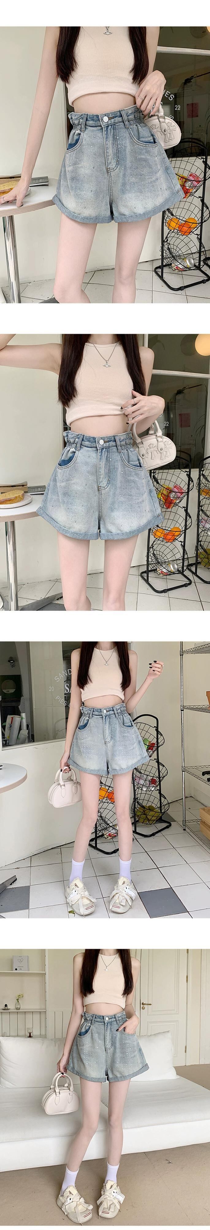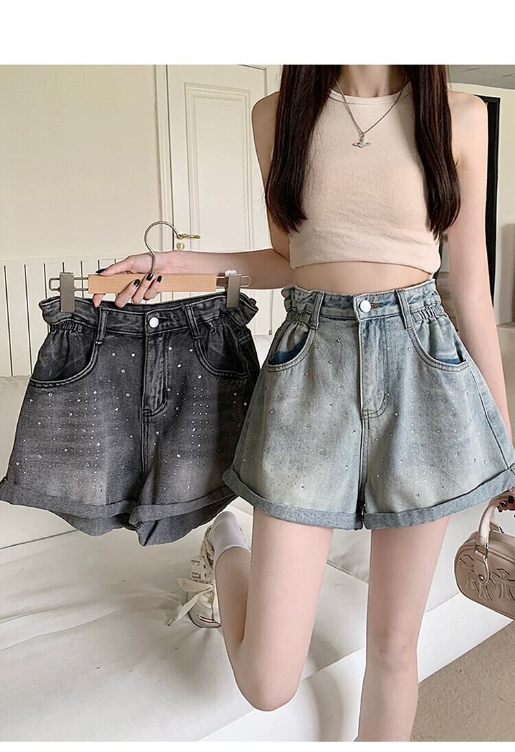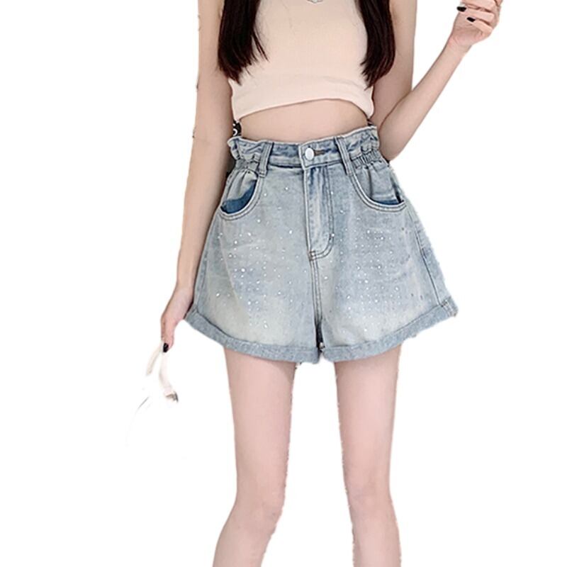 プラスサイズの婦人服 2023 流行の夏の新しいファットシスターファッションオールマッチダイヤモンドパンツワイドレッグカーリングデニムショートパンツ 大きめサイズ サマー 夏物 ワイドパンツ 8884162650372846