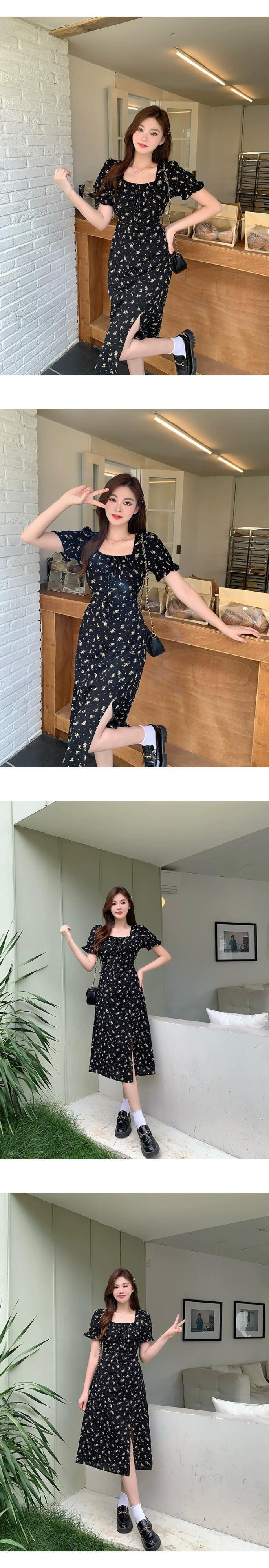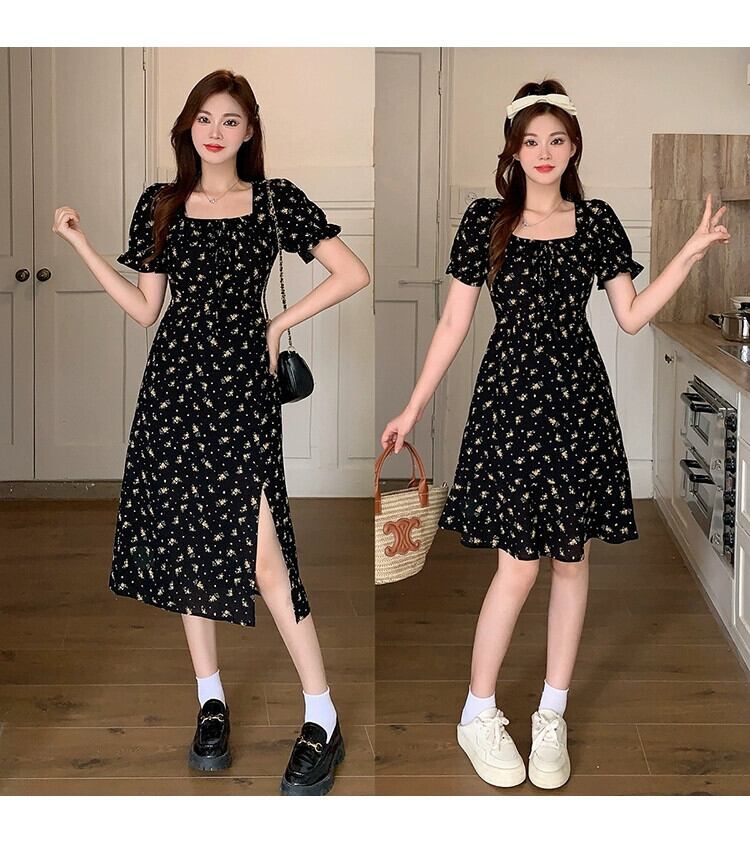 プラスサイズの婦人服 2023 流行の夏の新しい脂肪姉妹ファッション弓花柄スカートオールマッチスリット裾ドレス リボン 大きめサイズ サマー 夏物 8884116579273788