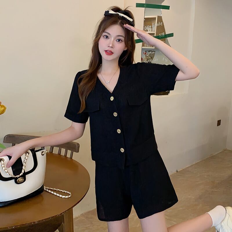 プラスサイズの婦人服 2023 流行の夏の新しいファットシスターファッションハイエンドスーツオールマッチトップスとショーツツーピーススーツ 大きめサイズ サマー 夏物 ブルマー 8884184802053756