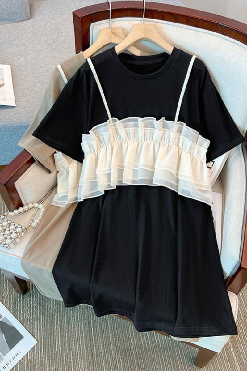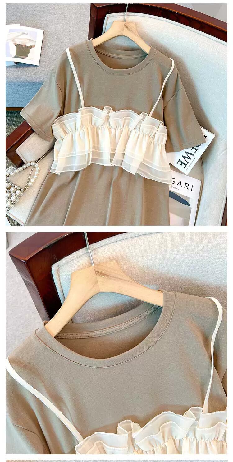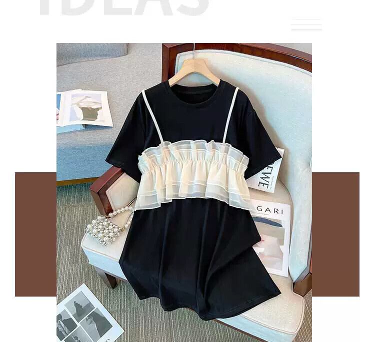 プラスサイズの婦人服 2023 夏服ファットシスター年齢低減気質バージョン半袖 A ラインスカートルーズデザインセンスドレス 大きめサイズ サマー 夏物 Aライン 8884152170547415