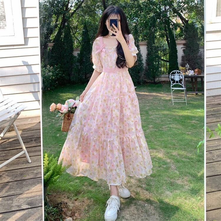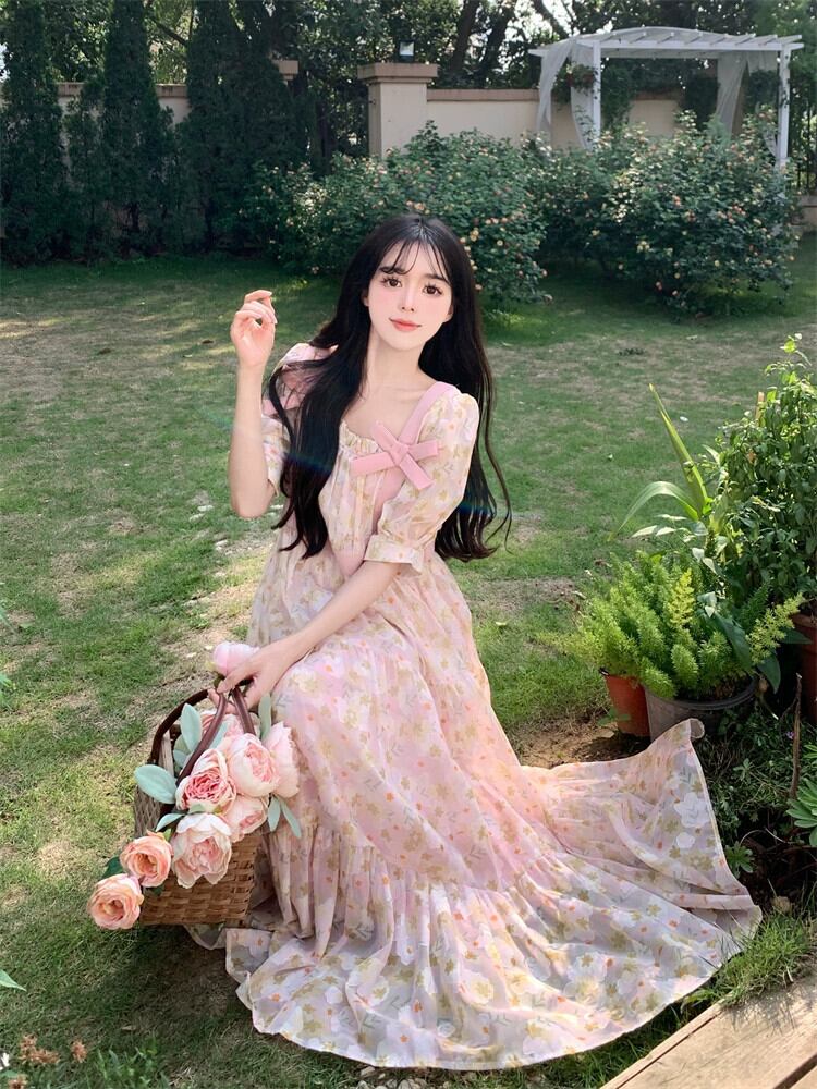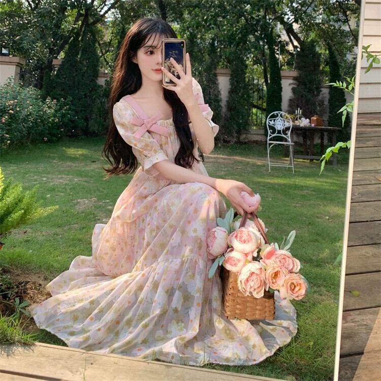 プラスサイズの婦人服 2023 トレンディな夏の新しいファットシスターファッショナブルなハイエンドの花柄ドレス多用途フレンチティーブレイクスカート 大きめサイズ サマー 夏物 888415362225217