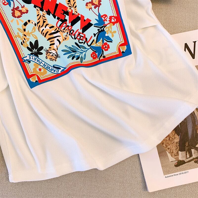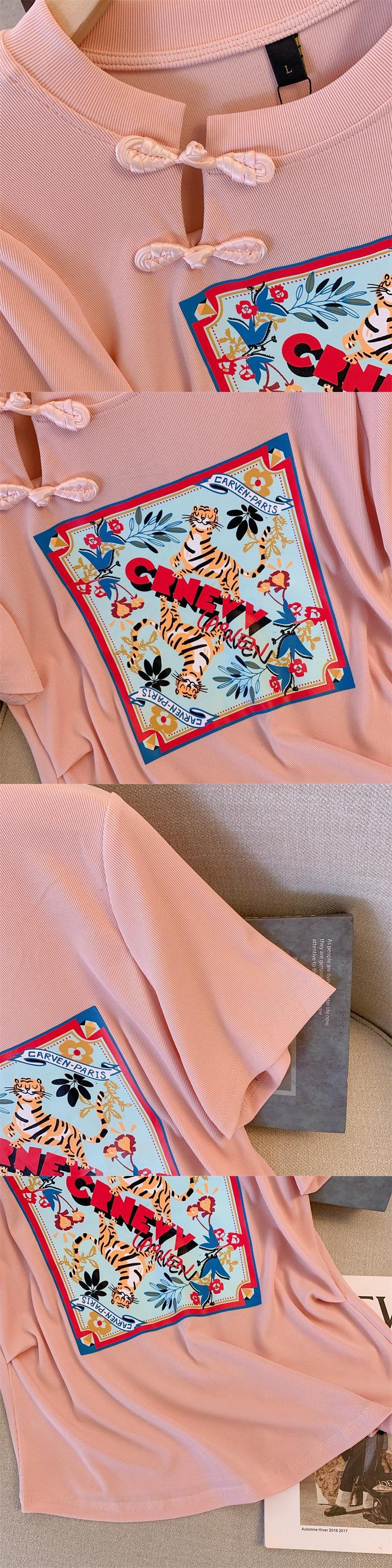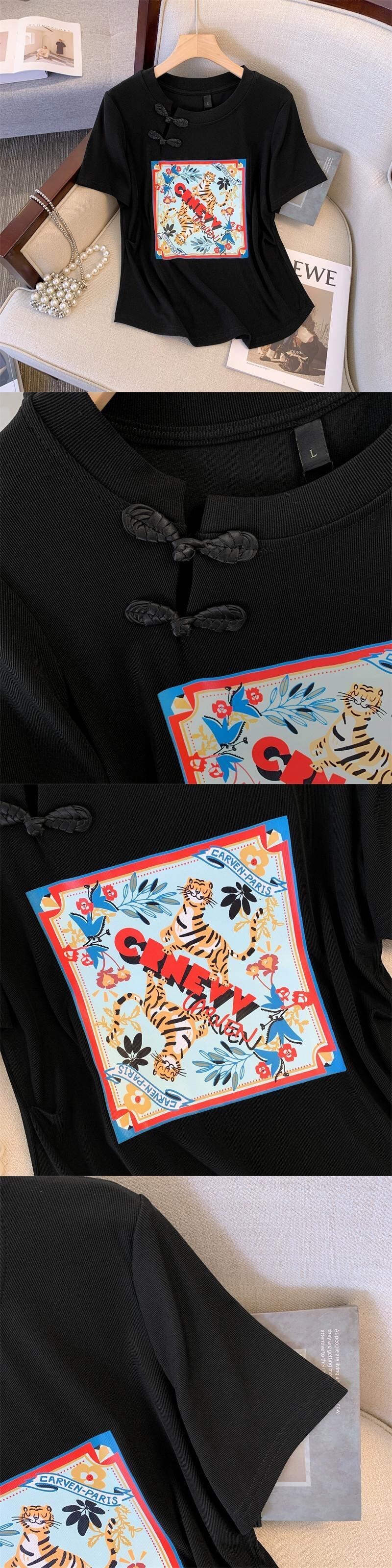 プラスサイズの婦人服 2023 夏服ファットシスターズ、eign スタイル、ボタンダウン プリント T シャツ、半袖シックなデザインのトップス 大きめサイズ サマー 夏物 Tシャツ 8884180278336205