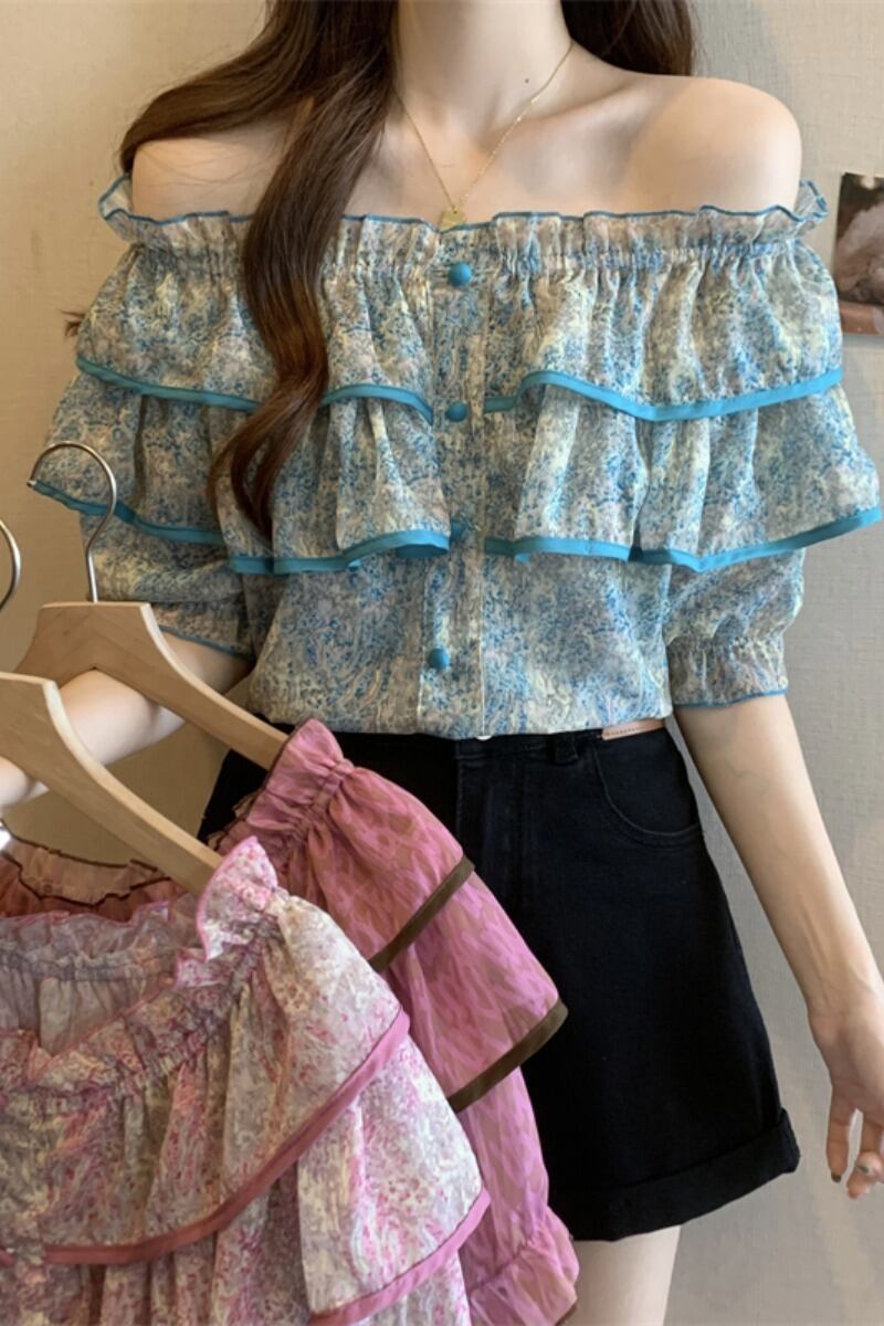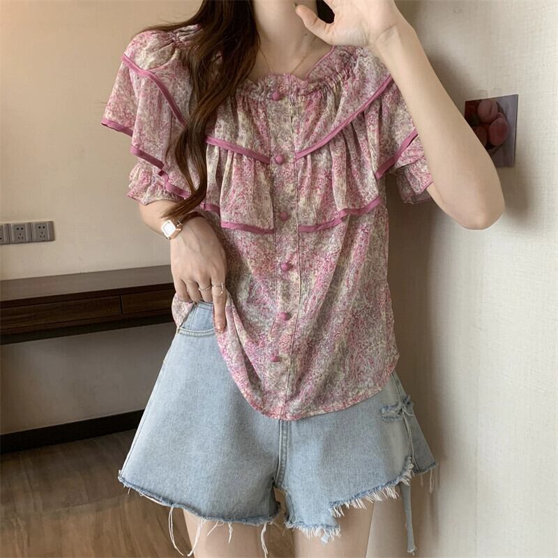 プラスサイズの婦人服 2023 夏服ファットカジュアルワンラインカラー花柄シフォンシャツニッチデザイントップス 大きめサイズ サマー 夏物 8884172092066898