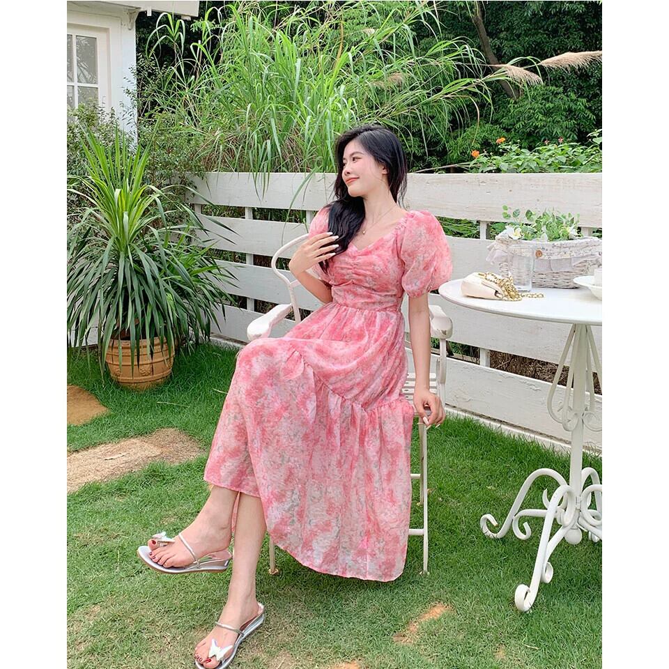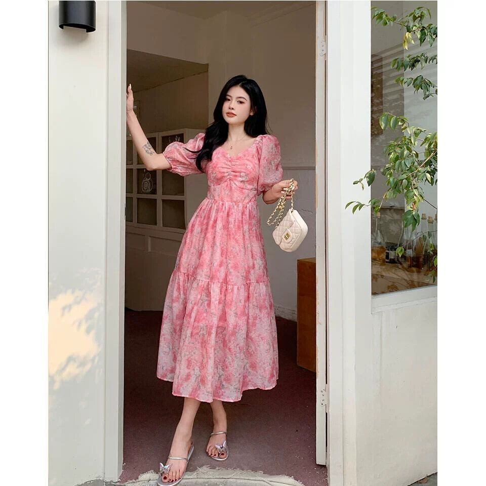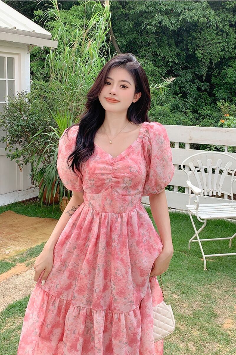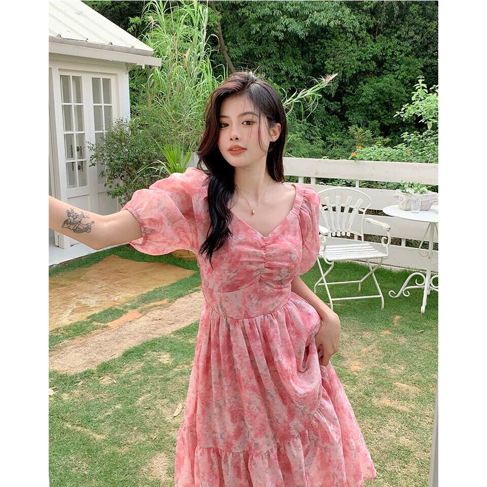 プラスサイズの婦人服 2023 脂肪姉妹夏の新半袖甘い妖精フリルドレスプリントシフォンドレス 大きめサイズ 大人ガーリー スウィート キュート カジュアル サマー 夏物 8884191207829112