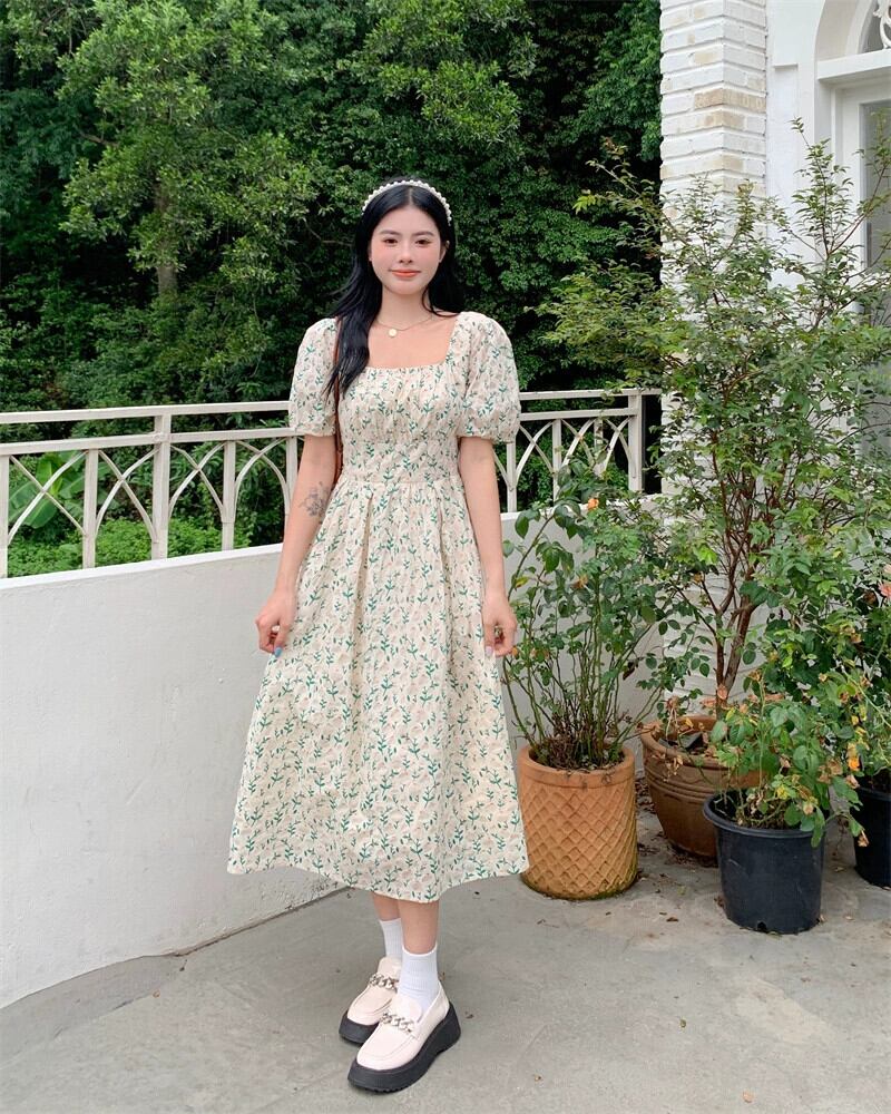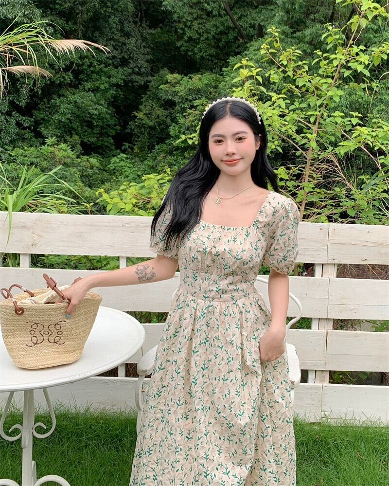 プラスサイズの婦人服 2023 夏のドレスファットシスターフレンチレトロスクエアカラーネクタイ花柄スカートデザインセンス年齢削減ドレス 大きめサイズ サマー 夏物 スクウェア 8884193007269135