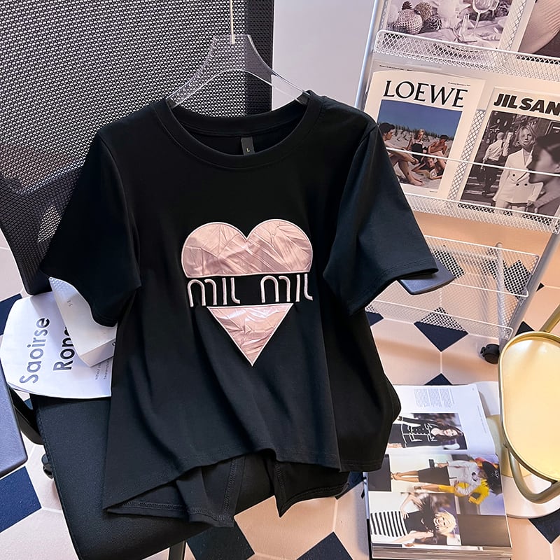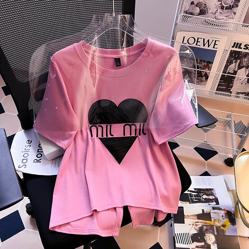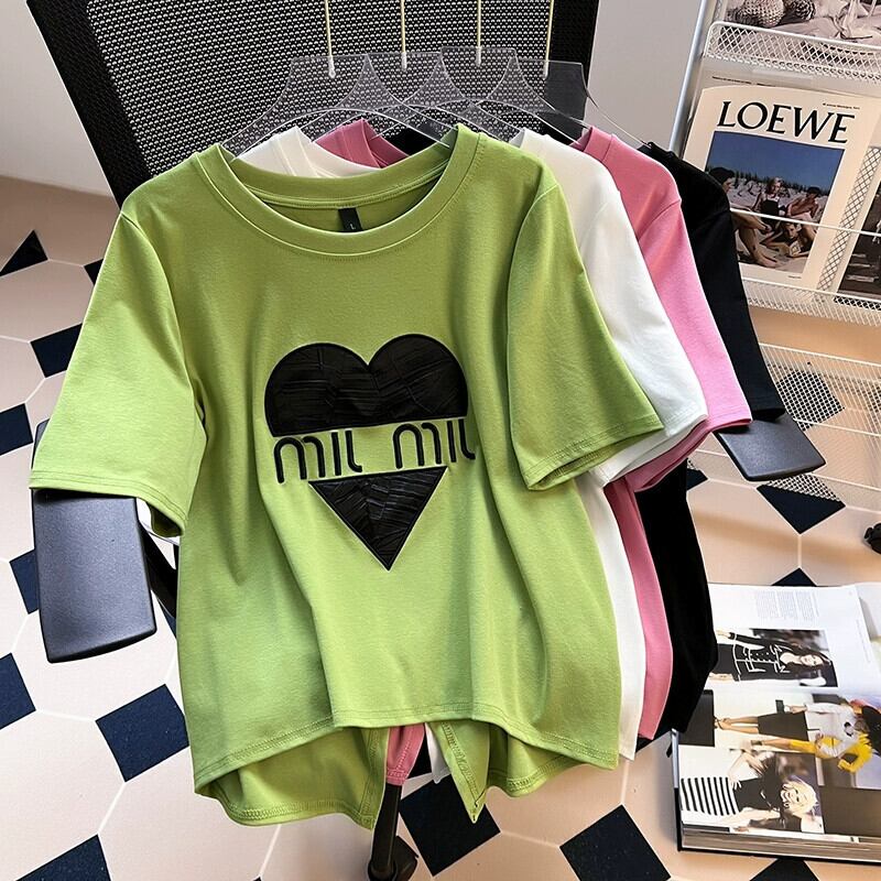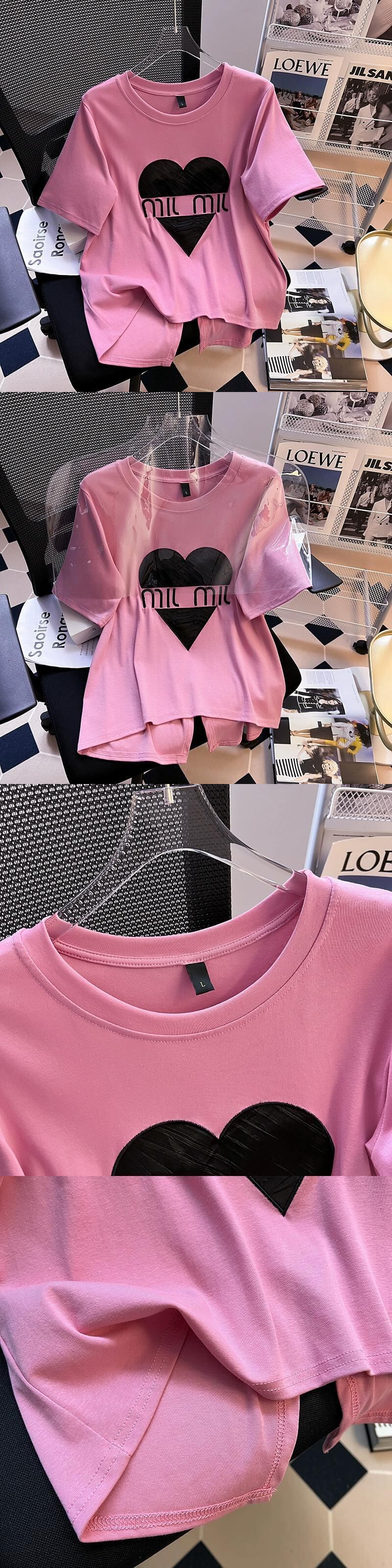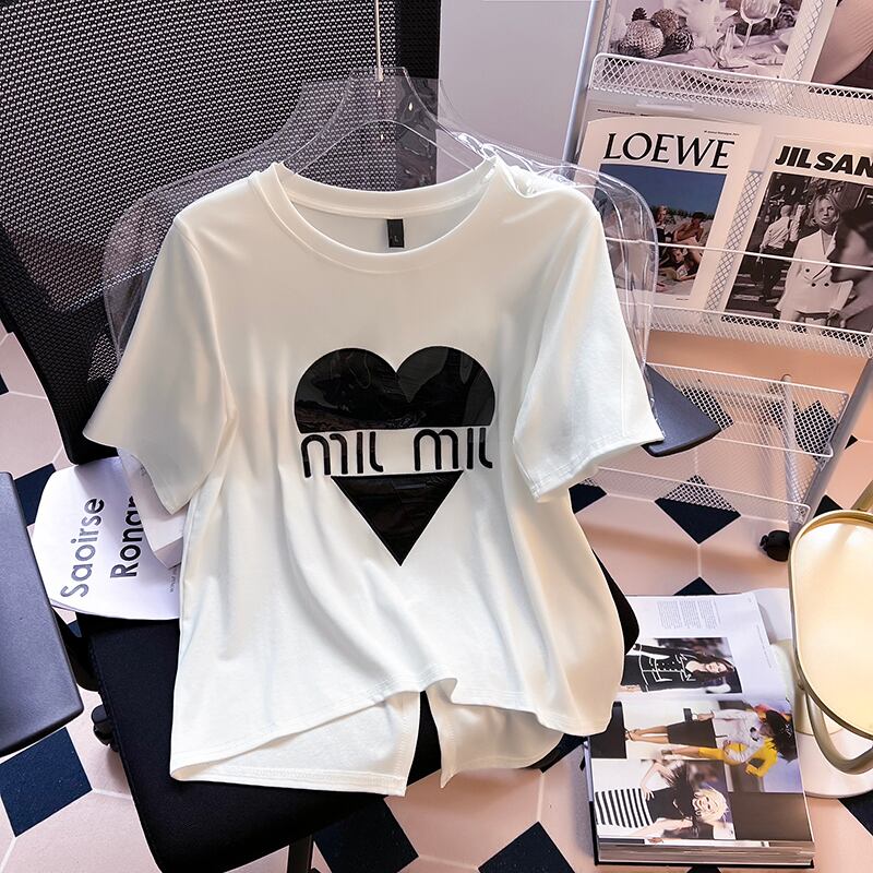 プラスサイズの婦人服 2023 夏服脂肪年齢を減らすラウンドネックオールマッチ不規則な T シャツニッチ年齢を減らすルーズトップス 大きめサイズ サマー 夏物 Oネック Tシャツ 8884156233848301