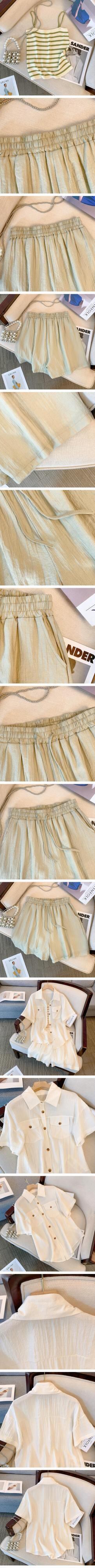 プラスサイズの婦人服 2023 脂肪姉妹夏の新しいファッションスーツ巾着ショーツキャミソールシャツ 3 点セット 大きめサイズ サマー 夏物 ブルマー 8884139449323056