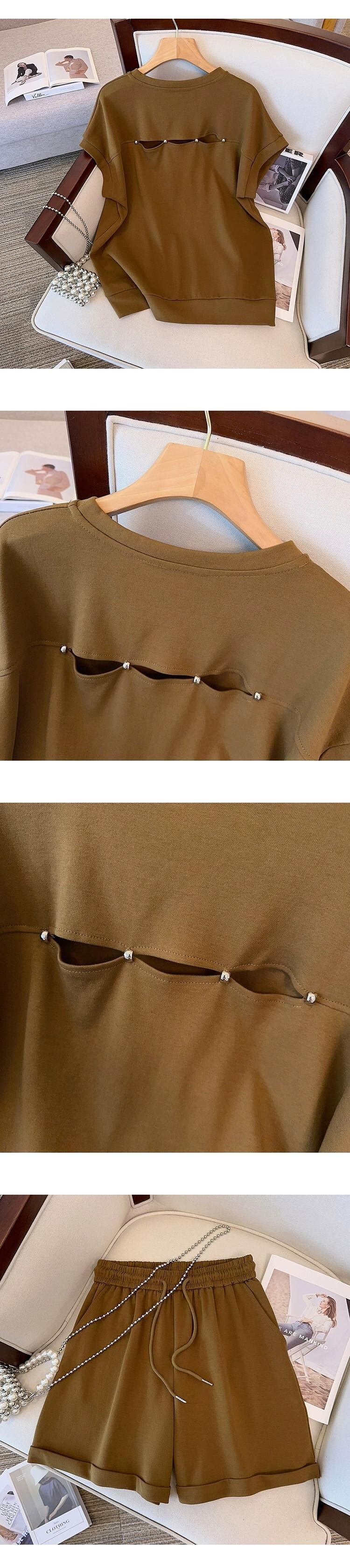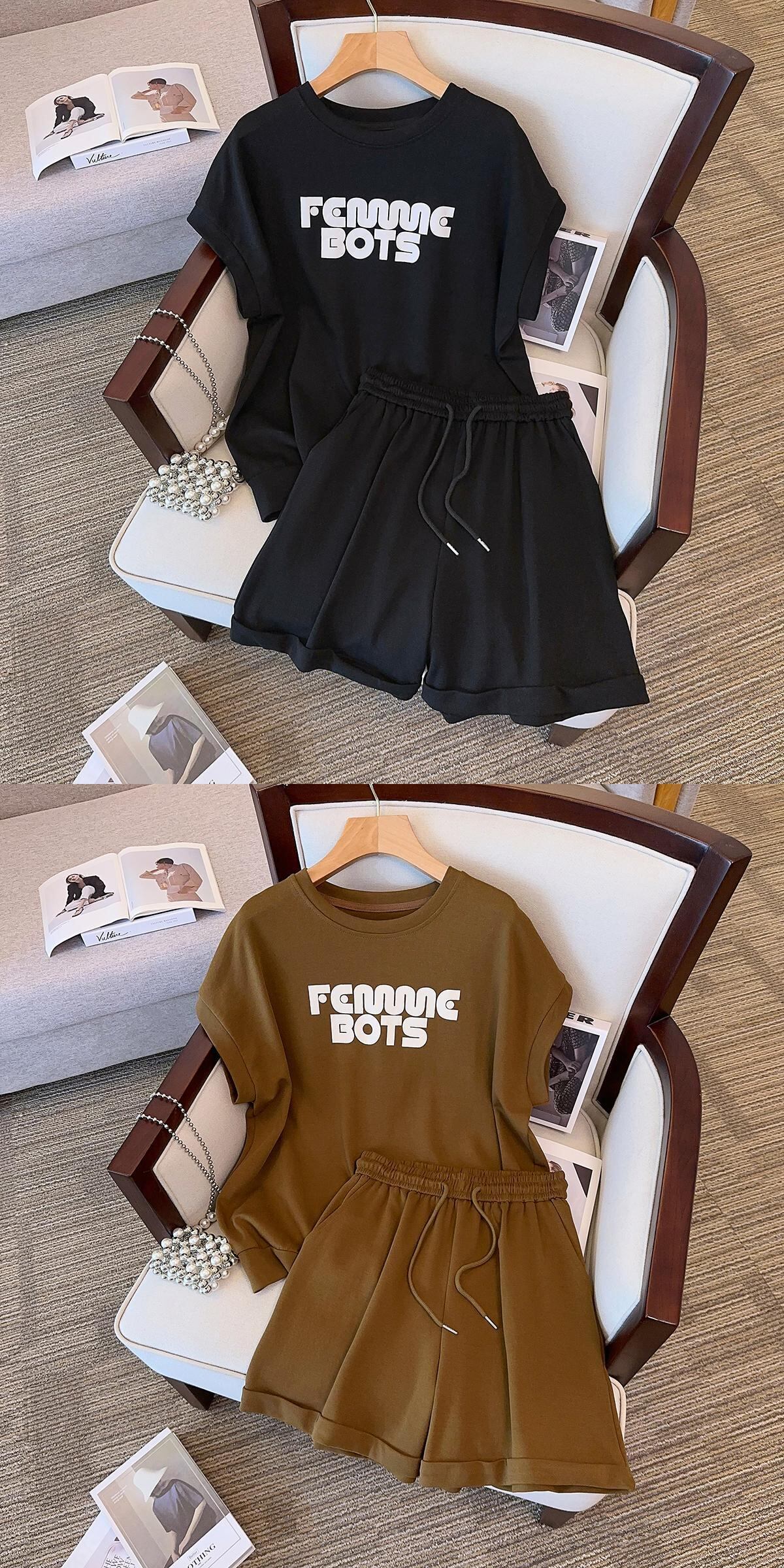 プラスサイズの婦人服 2023 ファットシスター夏の新しいスポーツとレジャースーツプリント半袖トップショーツ 2 点セット 大きめサイズ サマー 夏物 ブルマー 8884111023673623