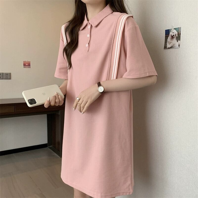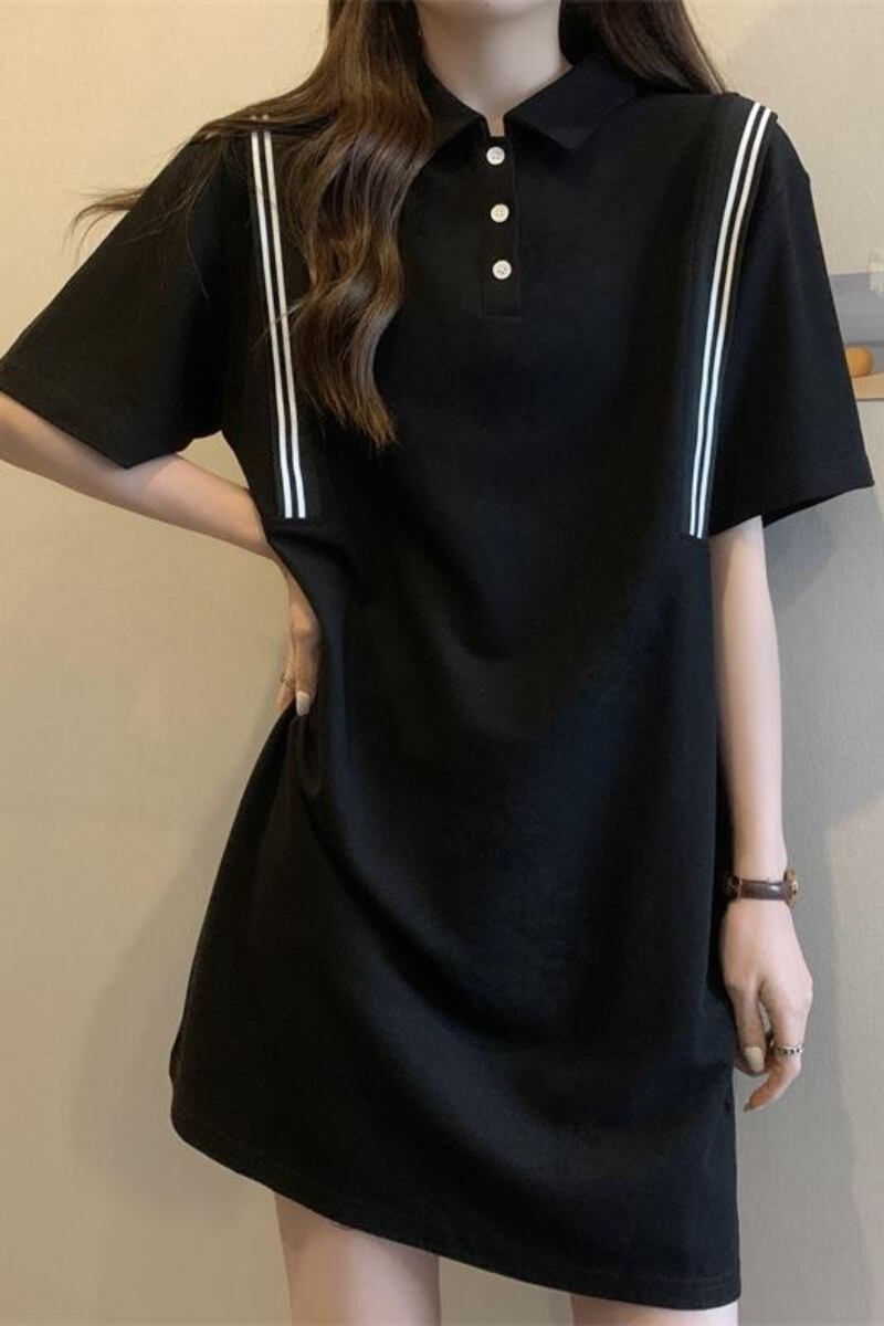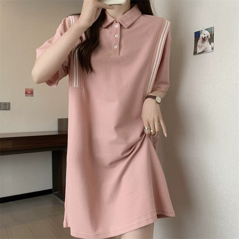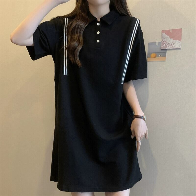 プラスサイズの婦人服 2023 夏の新脂肪姉妹 tシャツスカートカバー腹痩身カジュアルニッチポロカラードレス 大きめサイズ サマー 夏物 8884129527115532