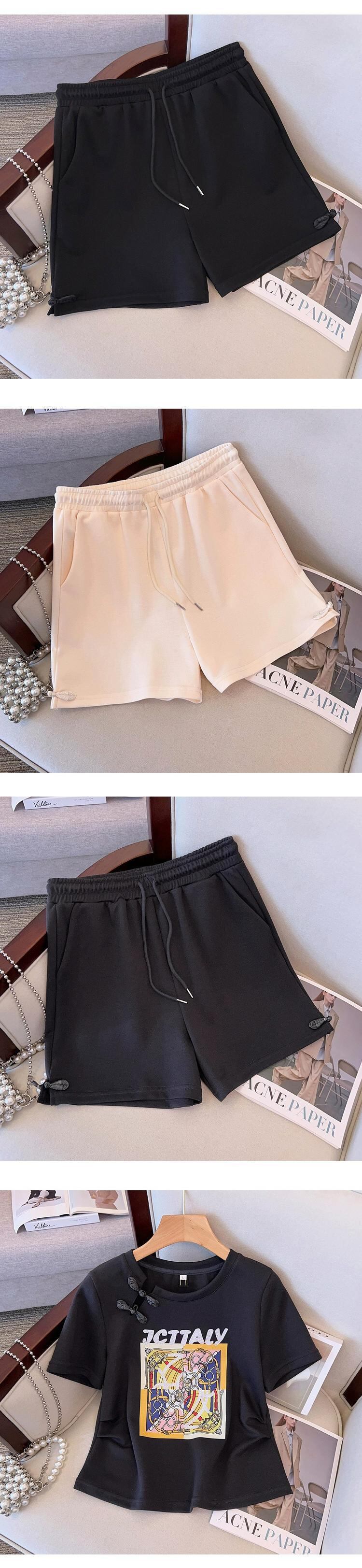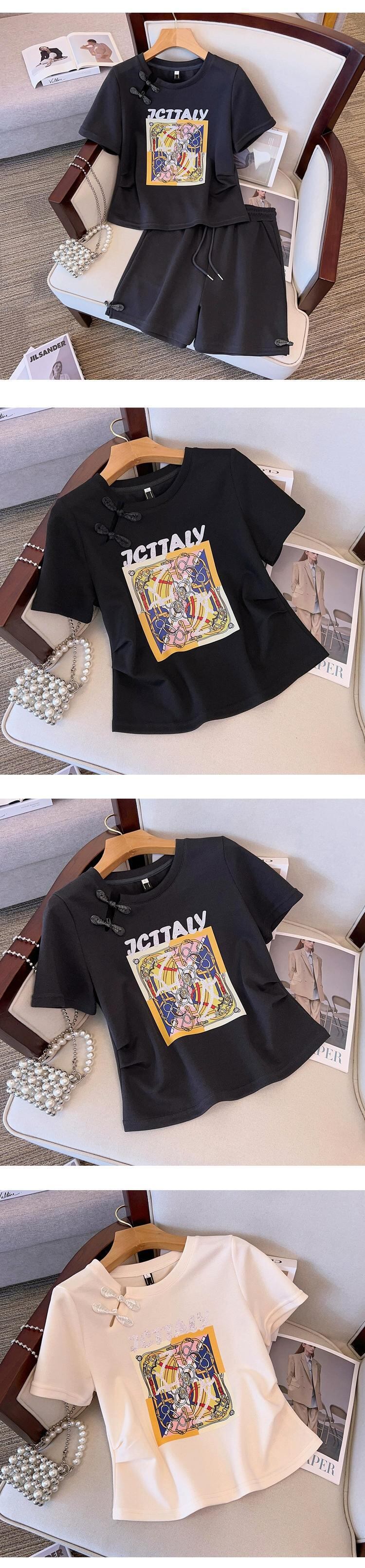 プラスサイズの婦人服 2023 ファットシスター夏新中国スーツスパンコール柄半袖トップショーツ 2 点セット 大きめサイズ サマー 夏物 ブルマー 8884140075874550