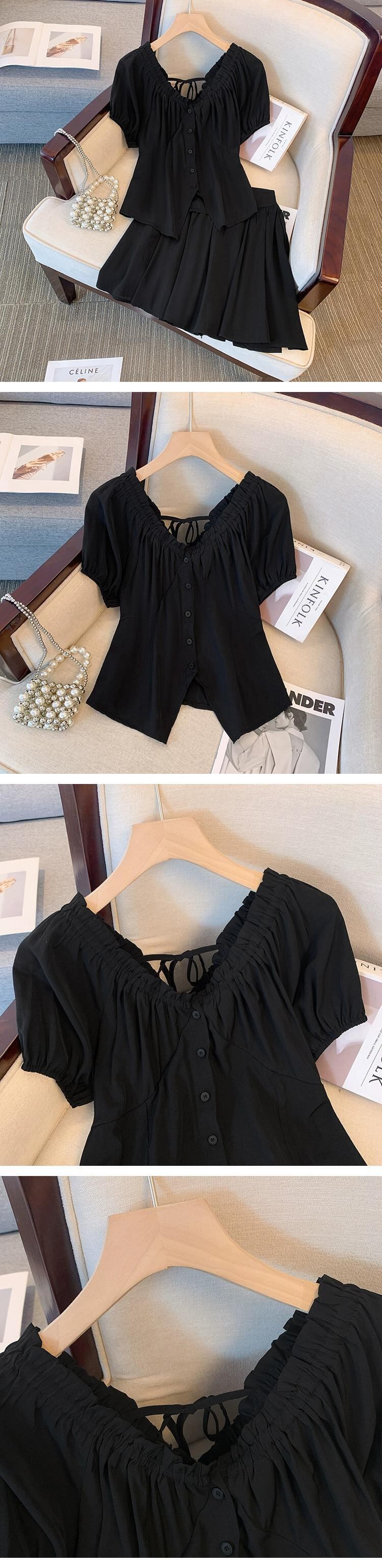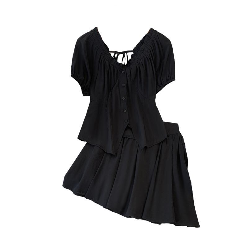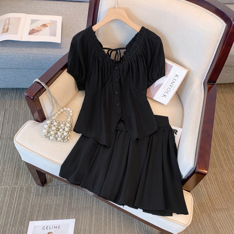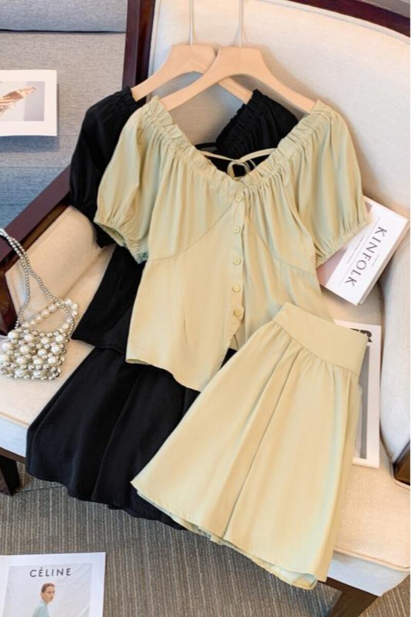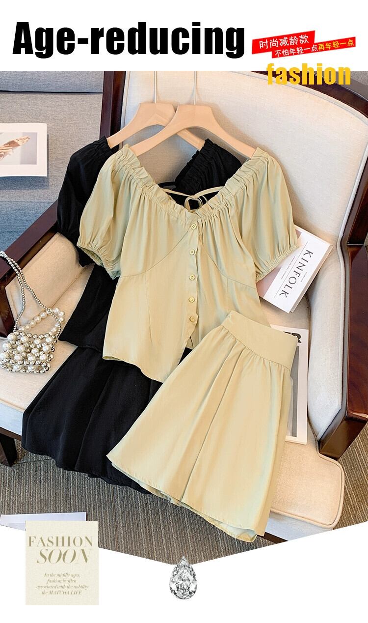 プラスサイズの婦人服 2023 ファットシスター夏新スーツ V ネックネクタイシャツ痩身年齢削減ショーツ 2 点セット 大きめサイズ サマー 夏物 ブルマー Vネック 8884152542336677