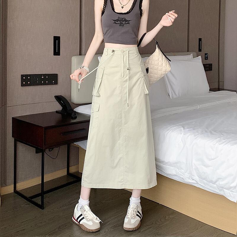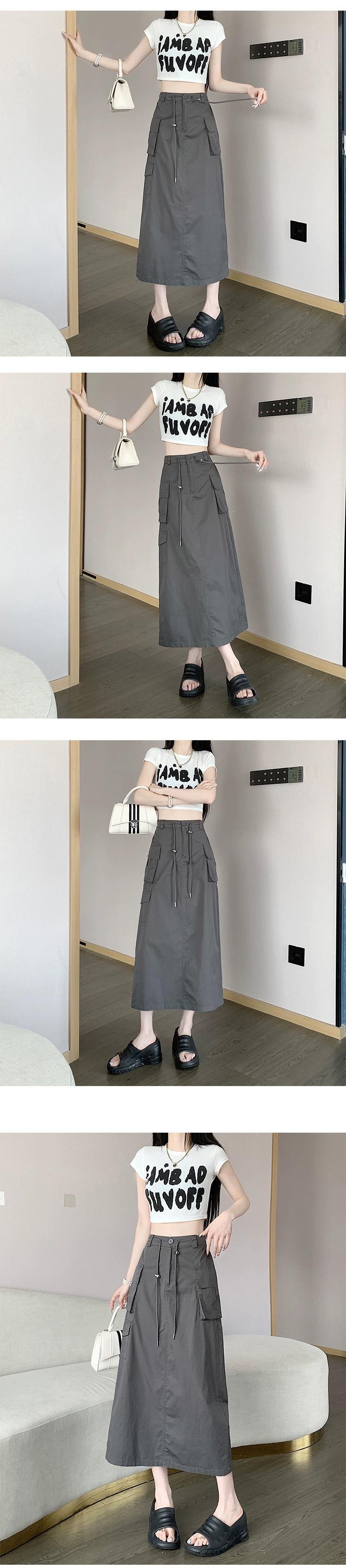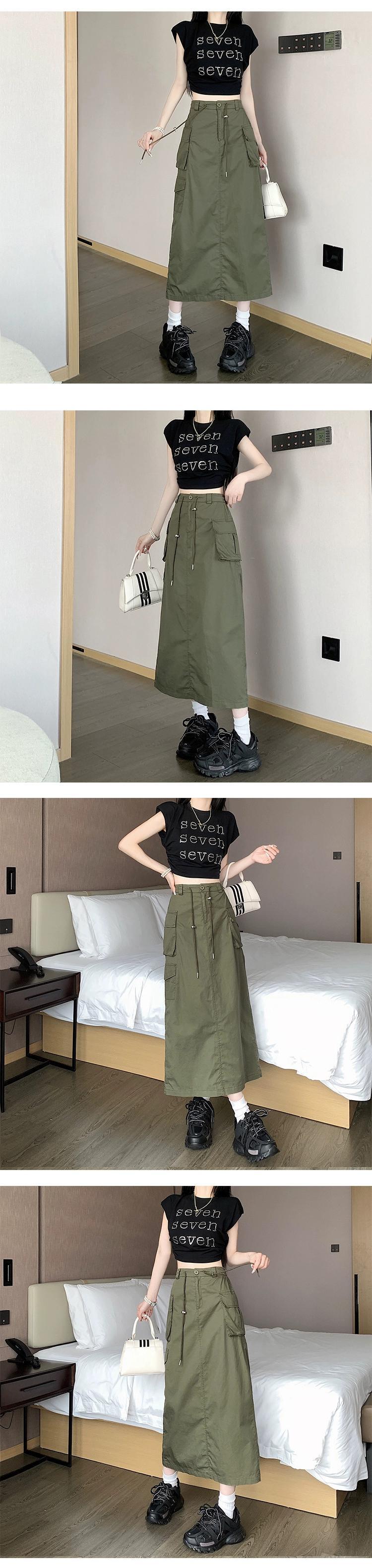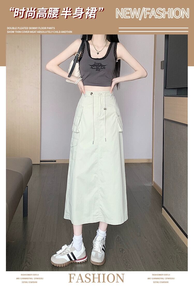 プラスサイズの婦人服 2023 ファットシスター夏新レトロスリットミッドレングススカートハイウエスト巾着ニッチツーリングスカート ハイウェスト 大きめサイズ サマー 夏物 8884154283300916