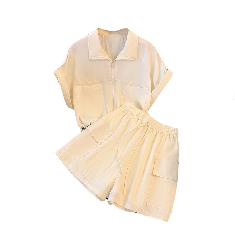 プラスサイズの婦人服 2023 夏服ファットシスター年齢軽減気質ツーリングジャケットハイウエスト気質カジュアルショーツ 2 点セット 大きめサイズ サマー 夏物 ブルマー 8884148583851724