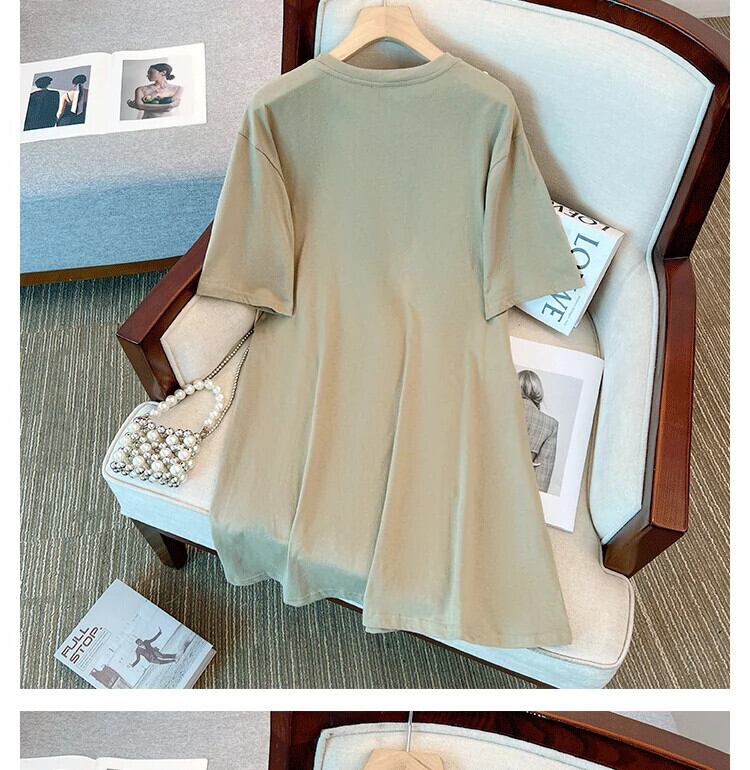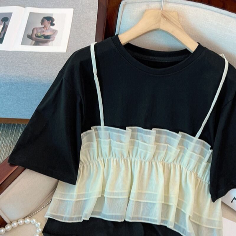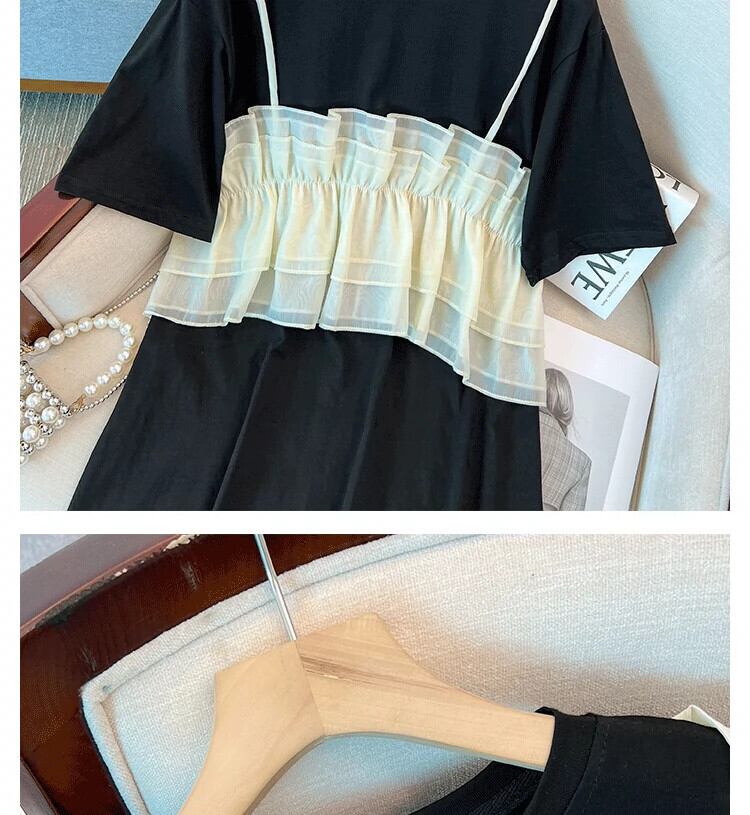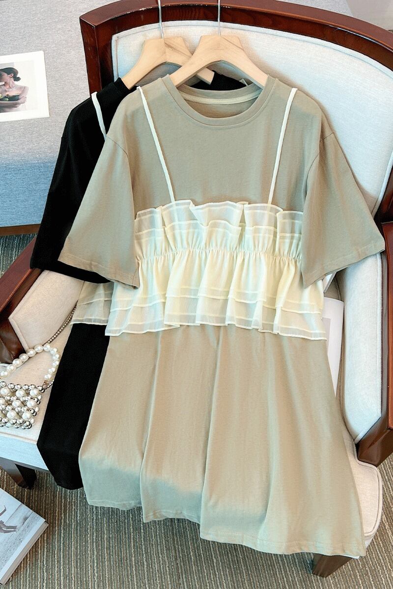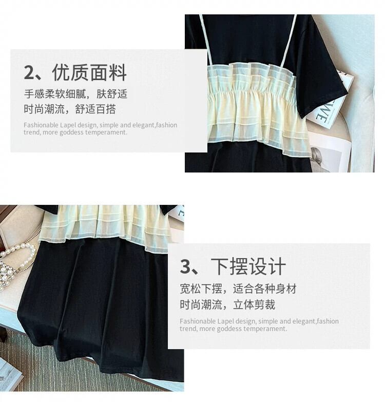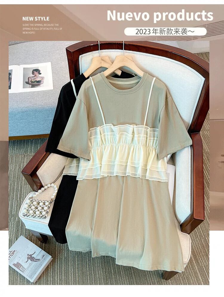 プラスサイズの婦人服 2023 夏服脂肪ファッションオールマッチルーズフェイクツーピース A ラインスカート肉をカバーし、薄いドレスを表示 大きめサイズ サマー 夏物 Aライン 888417668014043