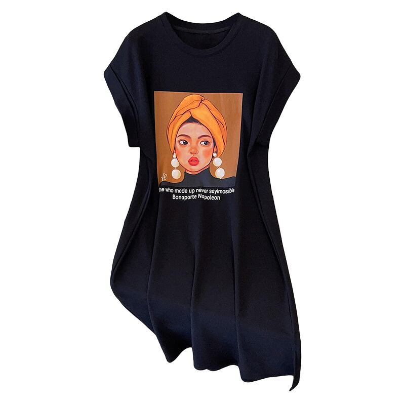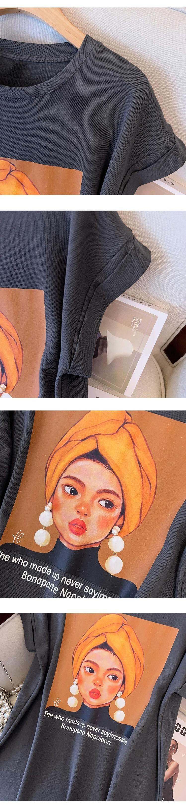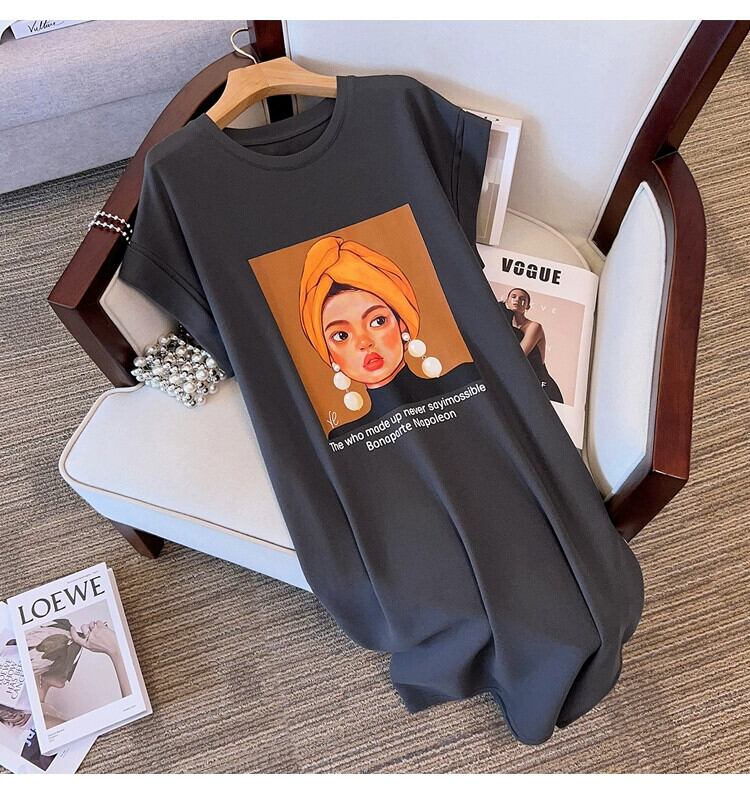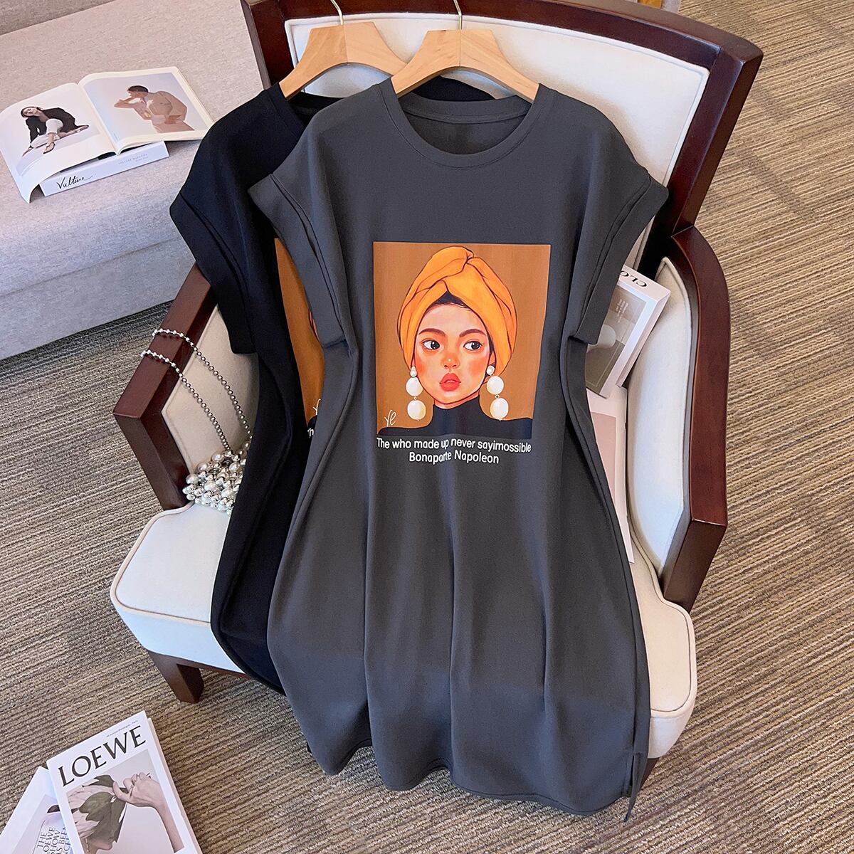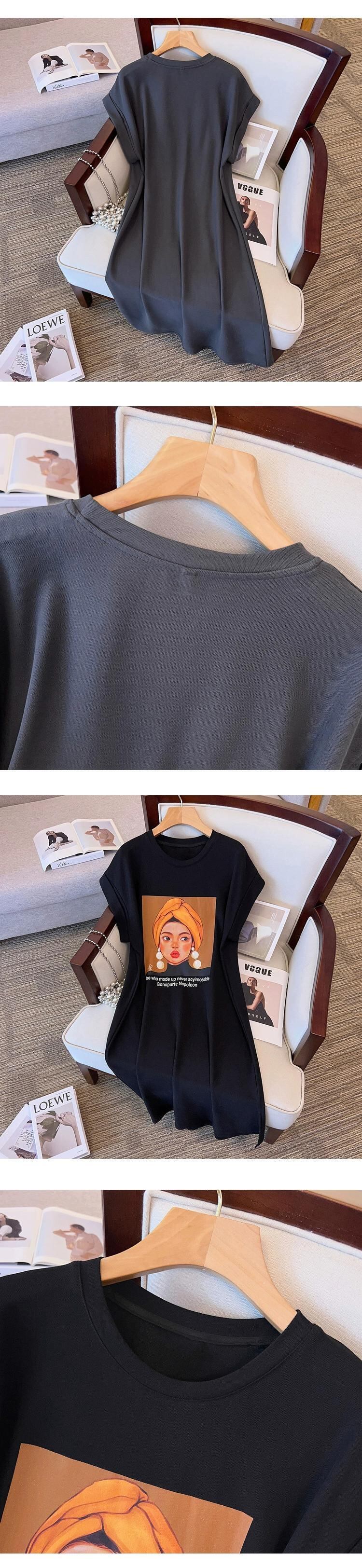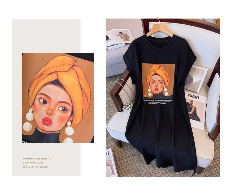 プラスサイズの婦人服 2023 脂肪姉妹夏の新ファッションカジュアル年齢軽減ミッドレングススカートプリントカーリングスリーブドレス 大きめサイズ サマー 夏物 8884112364722102