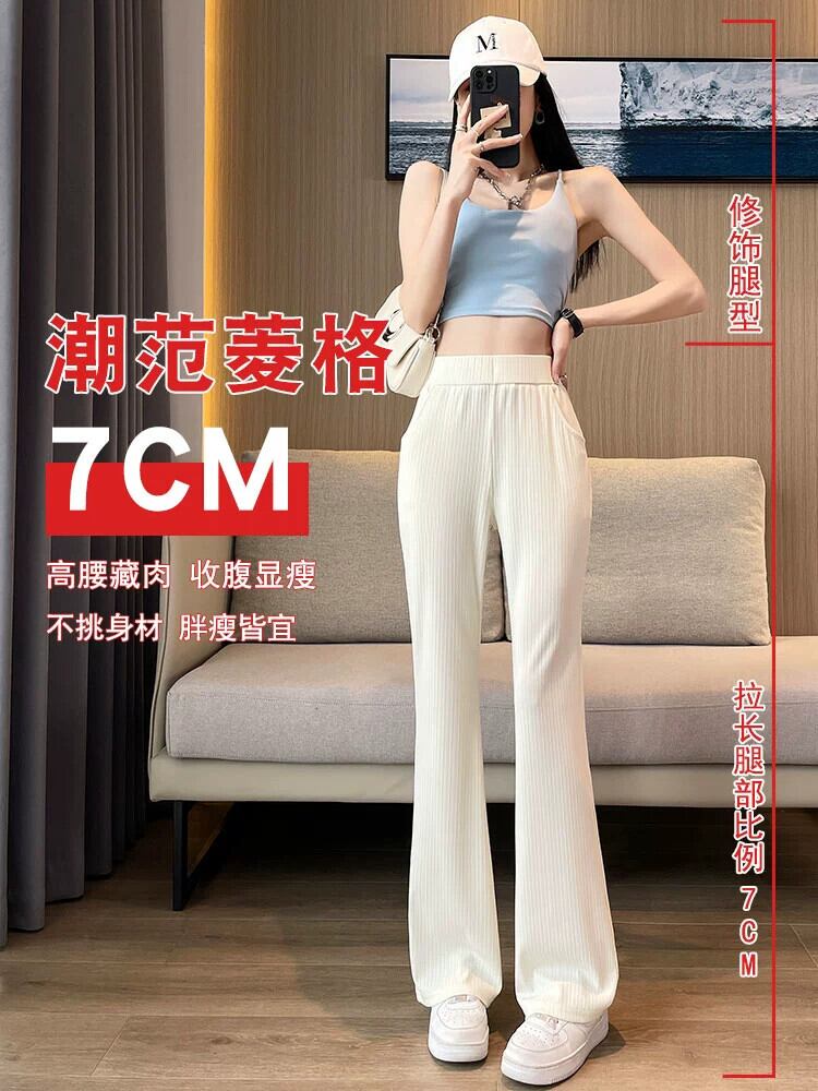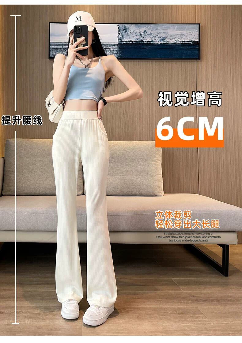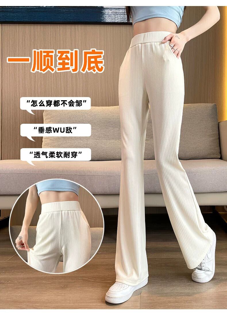 プラスサイズの脂肪姉妹 2023 新しい夏の女性のベルボトムパンツアイスシルク薄いセクションワイドレッグルーズストレートチューブ表示薄いマイクロベルボトムパンツ 大きめサイズ サマー 夏物 8884113792730666