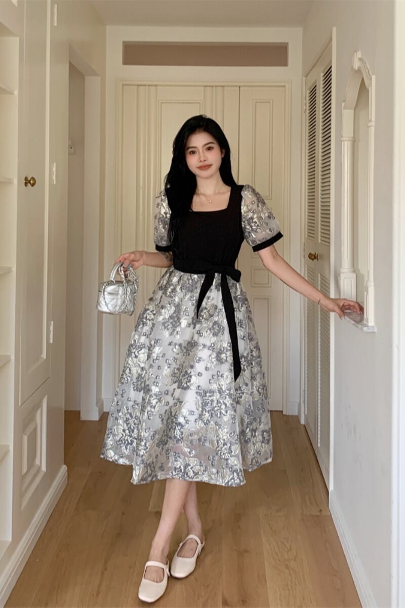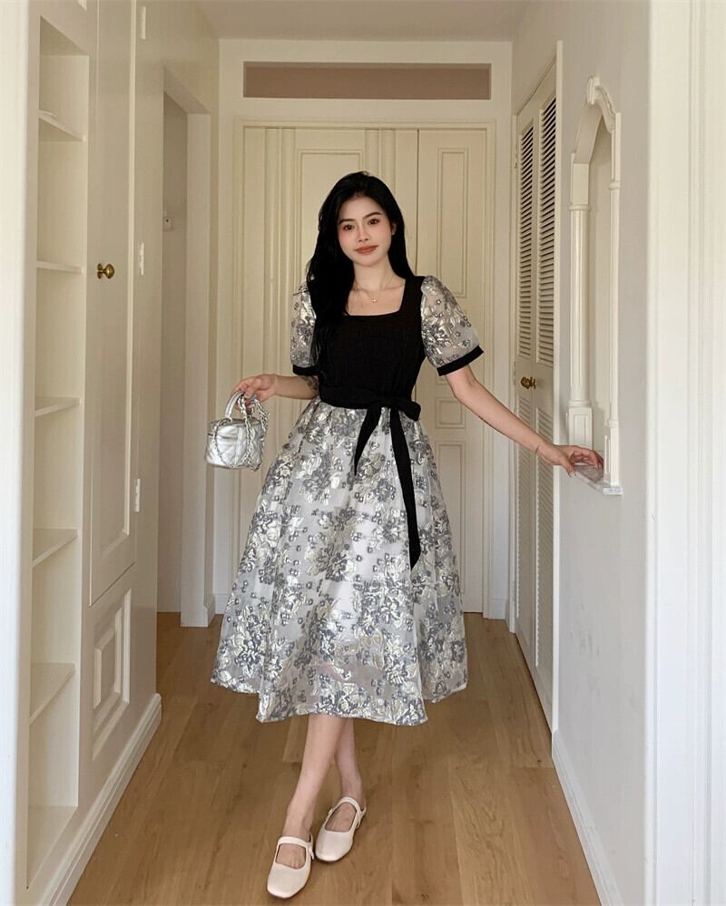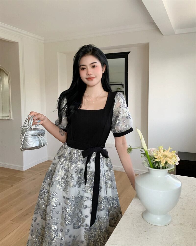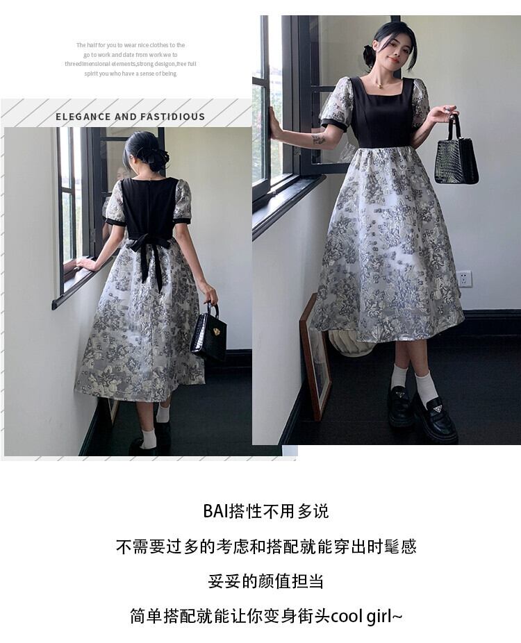 プラスサイズの婦人服 2023 流行の夏の新しいファットシスターハイエンドフレンチスカートファッション気質ヘップバーンスタイルドレス 大きめサイズ サマー 夏物 8884189885323246