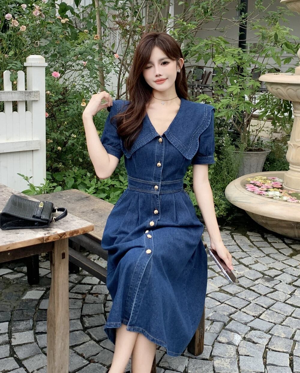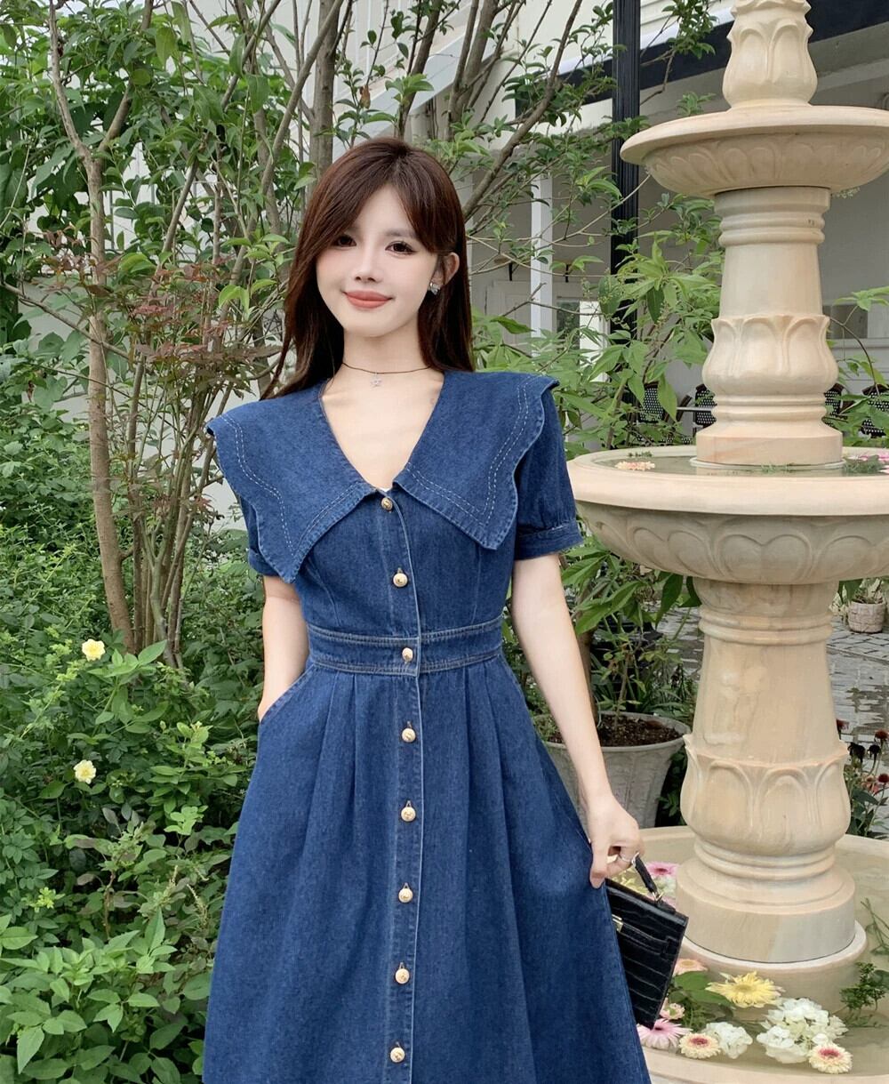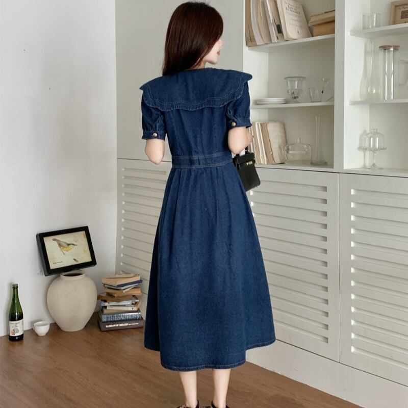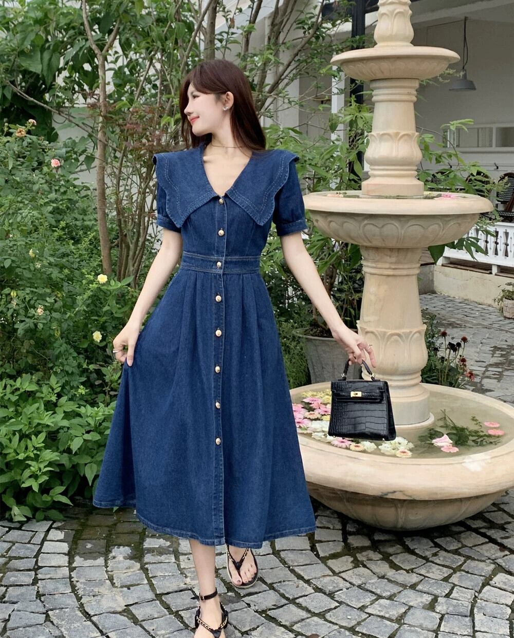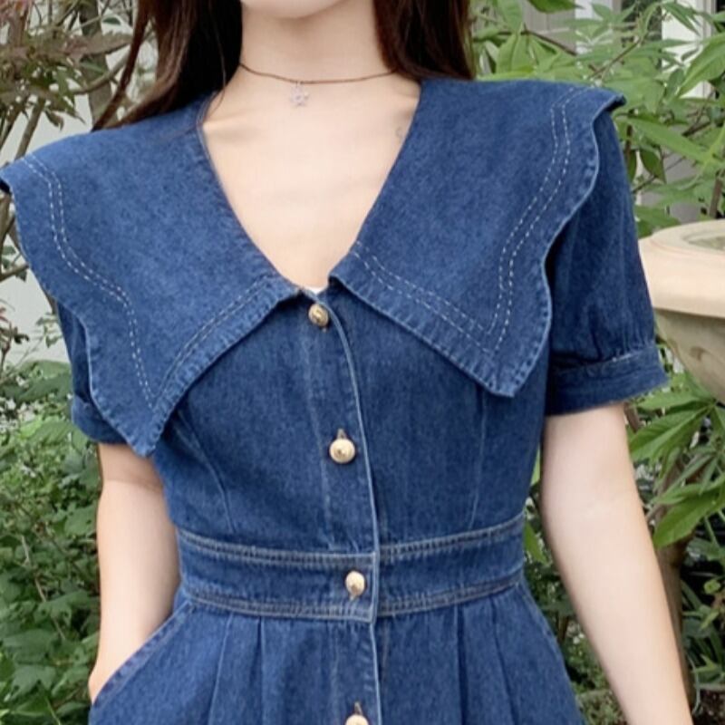 プラスサイズの婦人服2023夏服太った妹は年齢を重ねて痩せて見えるデニムAラインスカートバージョンのオールマッチデザインセンスドレス 大きめサイズ サマー 夏物 8884129052795092