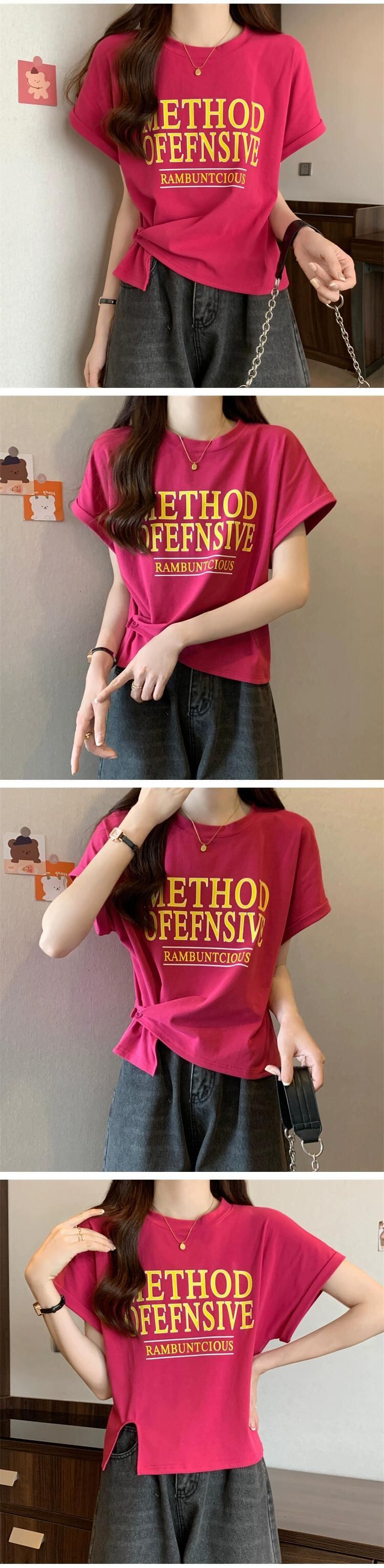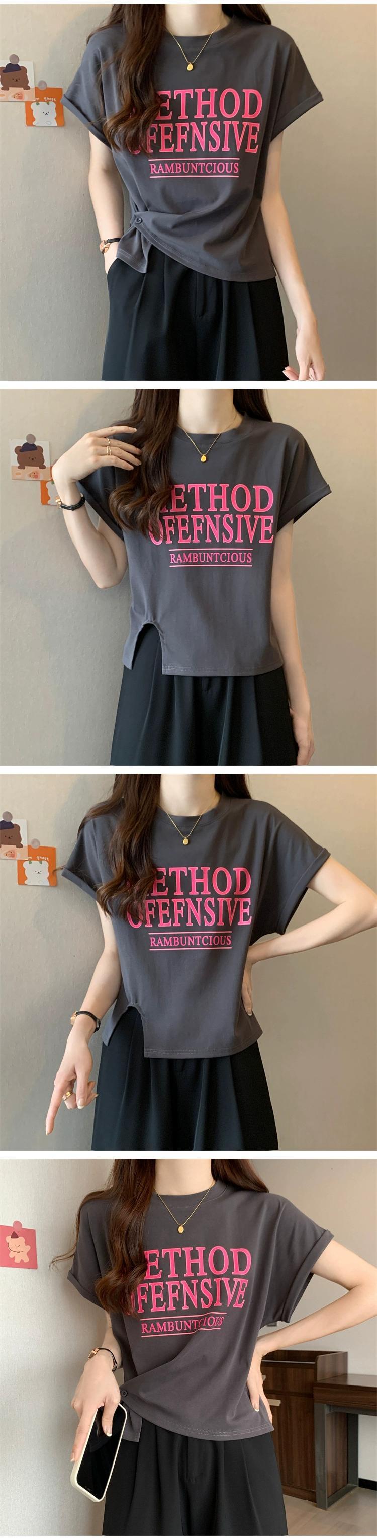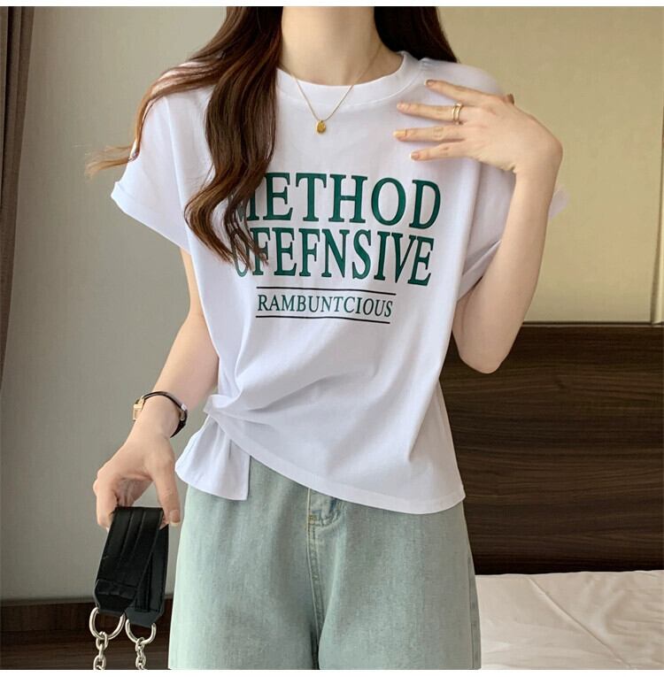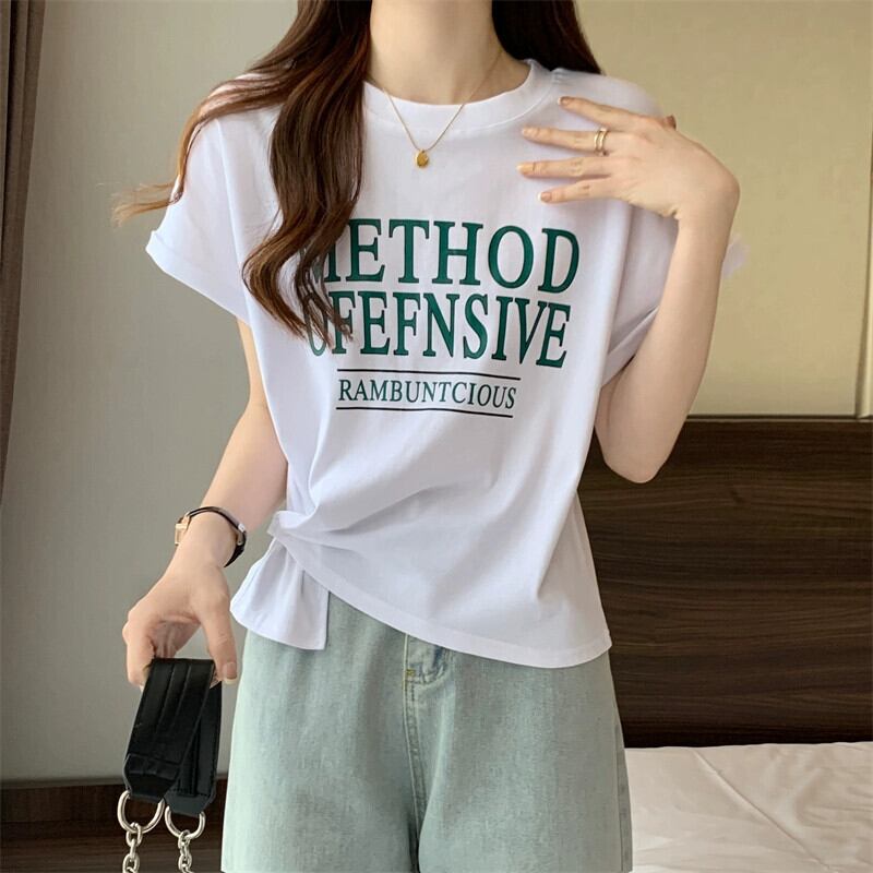 プラスサイズの婦人服 2023 ファットシスター夏新文字印刷フライングスリーブファッションオールマッチ半袖 Tシャツトップ 大きめサイズ サマー 夏物 8884114391552979