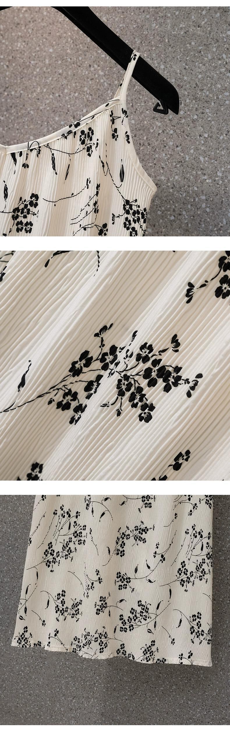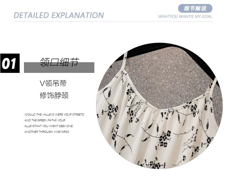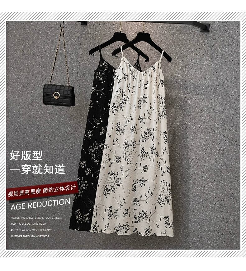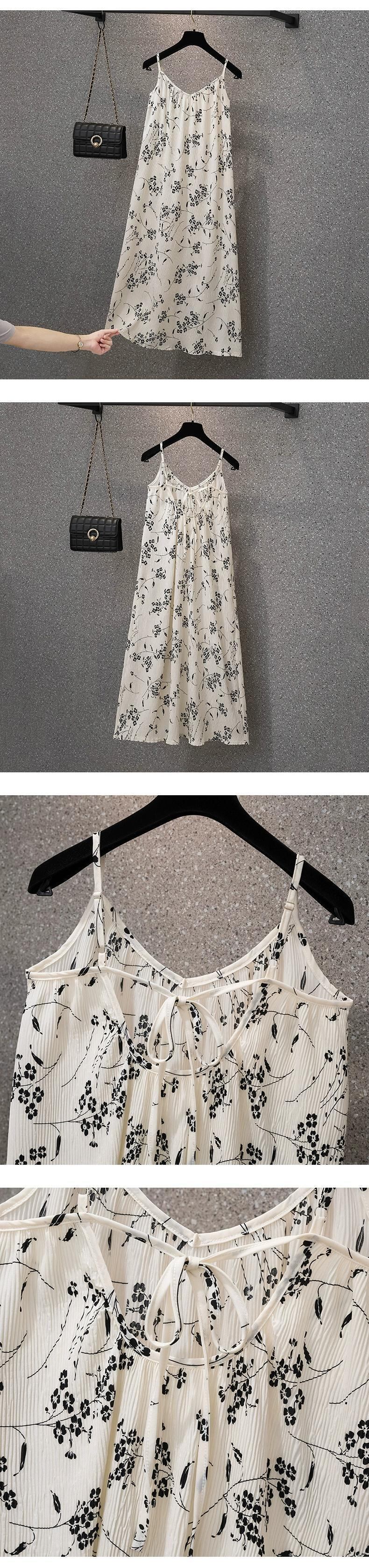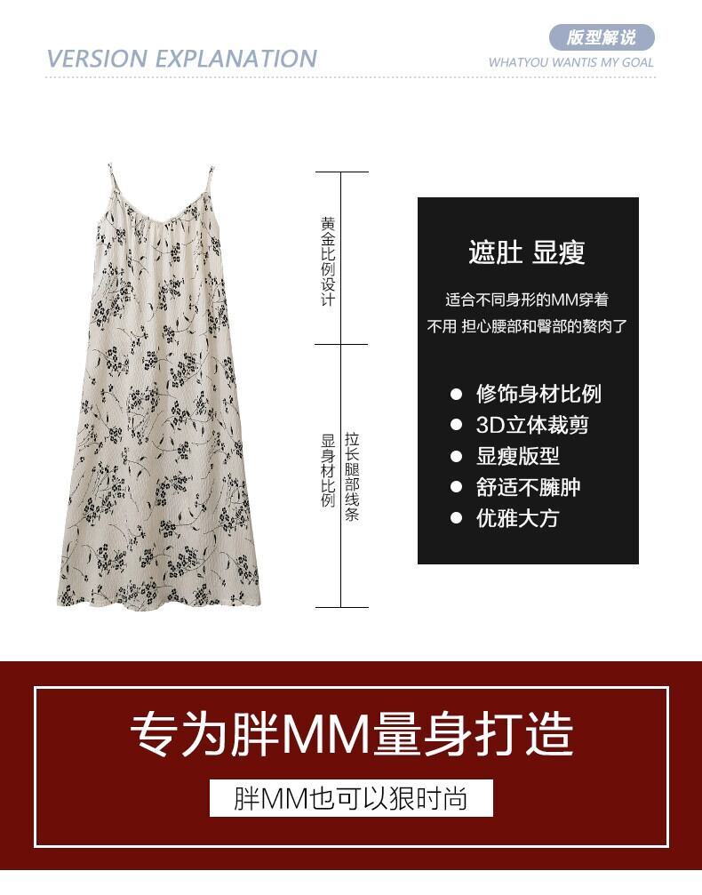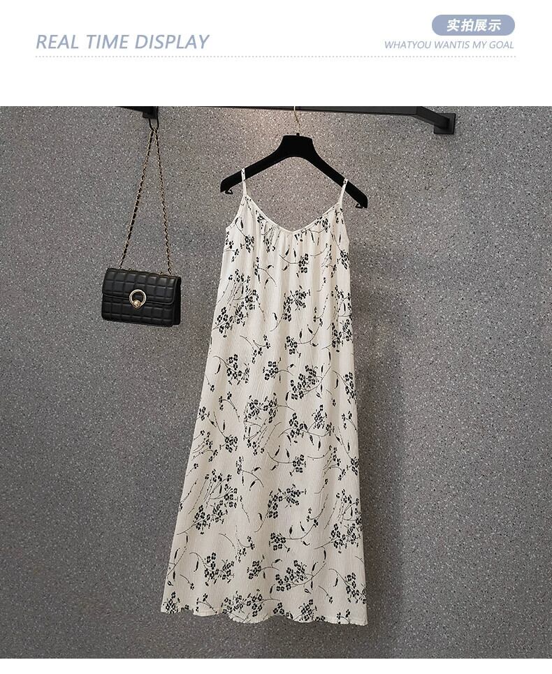 プラスサイズの婦人服 2023 夏服太い、大丈夫、フレンチ V ネック サスペンダー スカート、ゆるい肉カバー デザイン、花柄スカート 大きめサイズ サマー 夏物 Vネック 8884124825512964