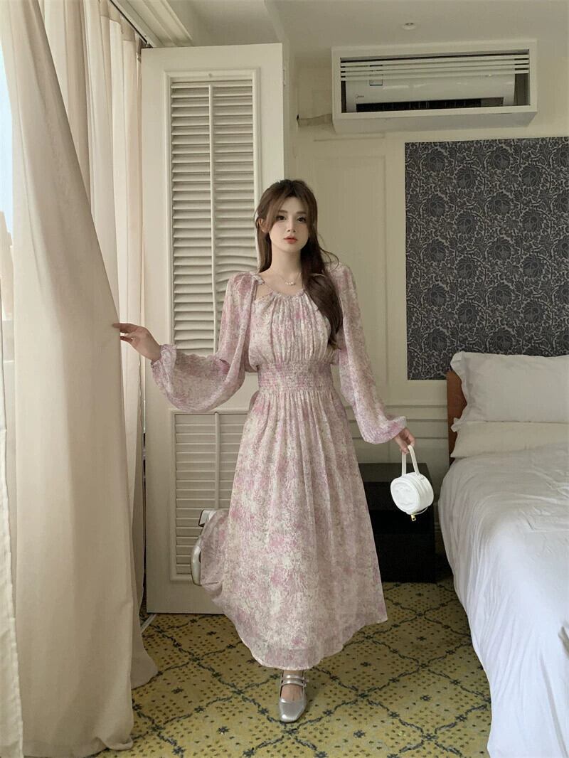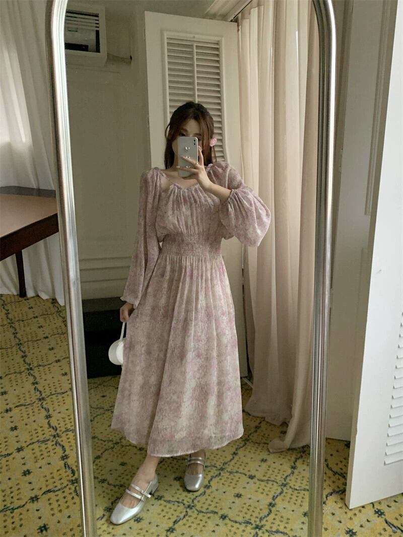 プラスサイズの婦人服 2023 流行の夏の新しいファットシスターフレンチスタイルの弾性ウエスト花柄スカート高度な年齢を軽減するニッチドレス エラスティック 伸縮 大きめサイズ サマー 夏物 8884188426835702