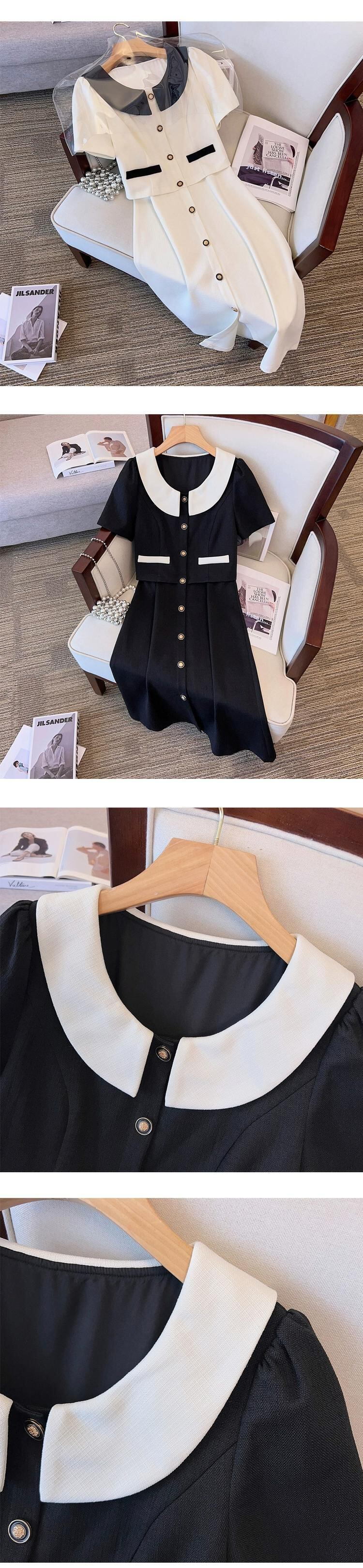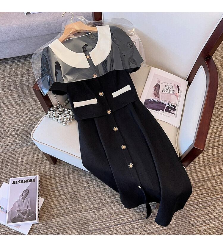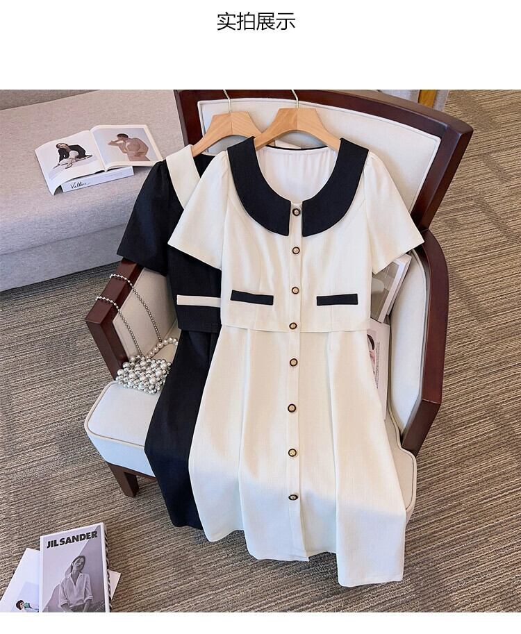 プラスサイズの婦人服 2023 流行の夏の新しいファットシスターフレンチスタイル偽ツーピーススカート人形襟スリムドレス 大きめサイズ サマー 夏物 8884142985529187