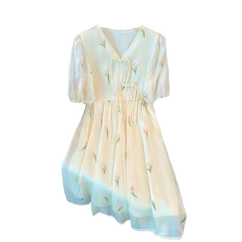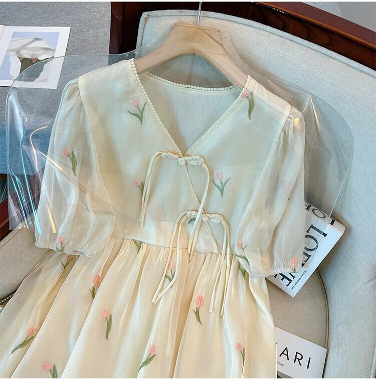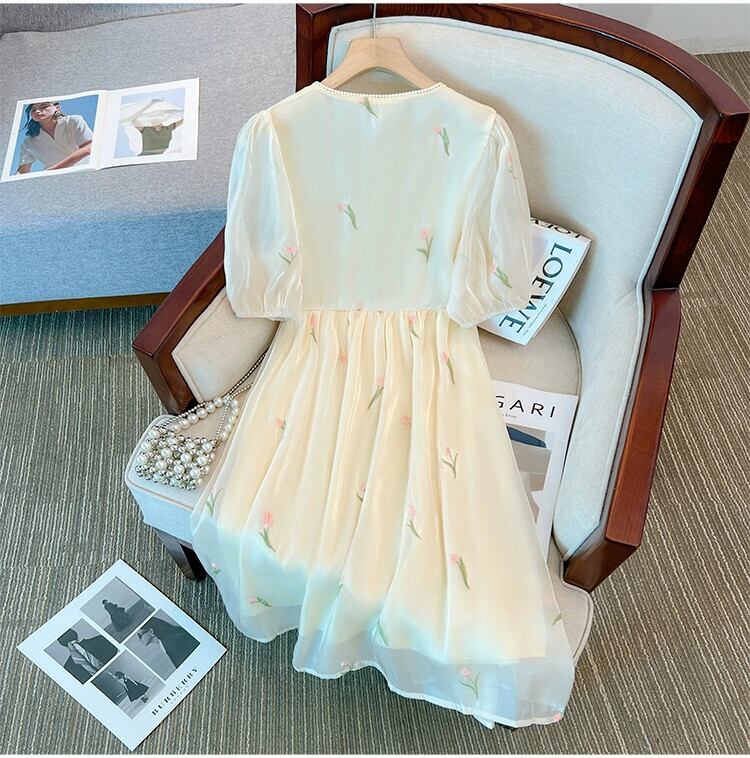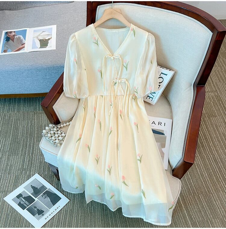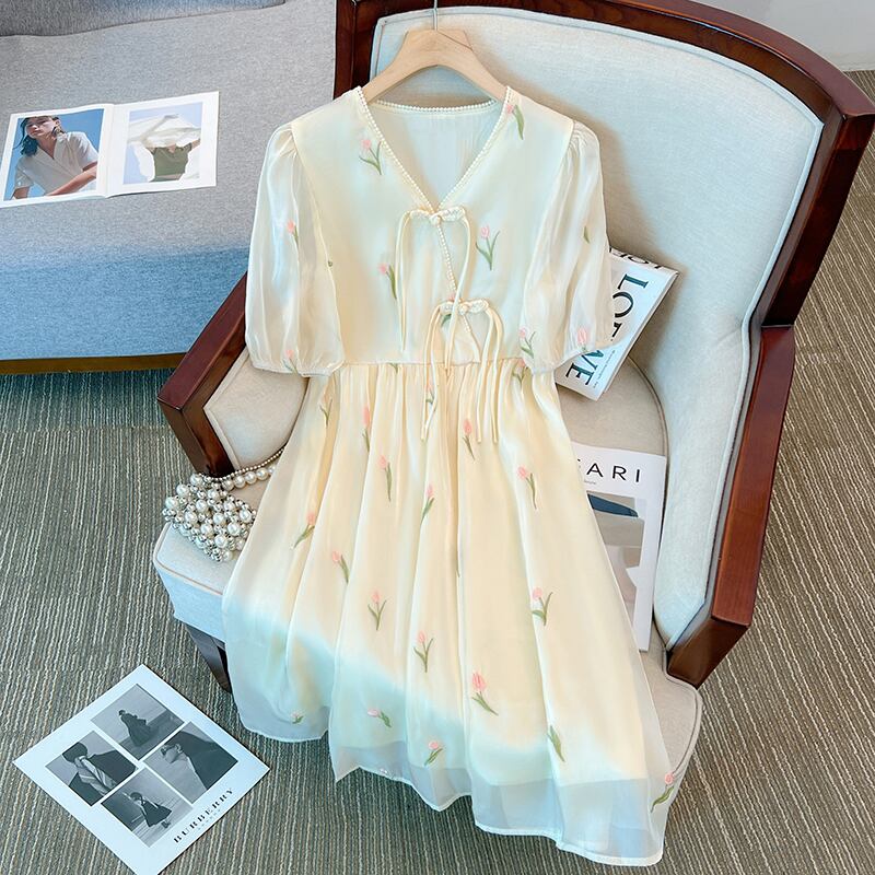 プラスサイズの婦人服 2023 トレンディな夏の新しい脂肪姉妹バージョン年齢軽減ミッドレングススカート弾性ウエストオールマッチ年齢軽減ドレス エラスティック 伸縮 大きめサイズ サマー 夏物 8884135059682139