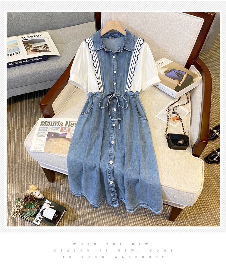 プラスサイズの婦人服 2023 流行の夏の新しいファットシスタースリムルーズスカート気質デザイン高度なスプライシングドレス 大きめサイズ サマー 夏物 888413042070060