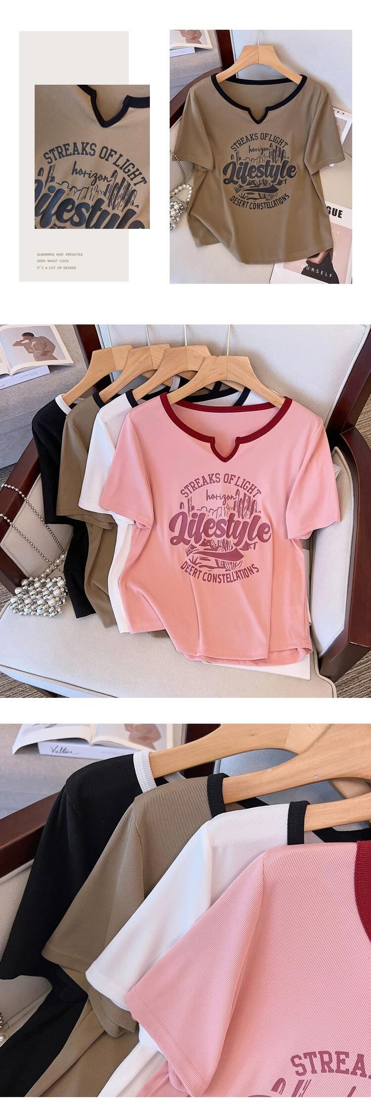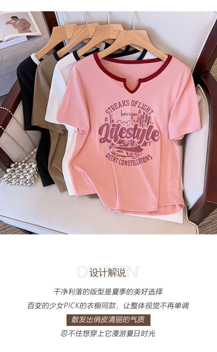 プラスサイズの婦人服 2023 脂肪姉妹夏の新ファッションカモメ襟レタープリントスリム半袖トップ Tシャツ 大きめサイズ サマー 夏物 8884199495815227