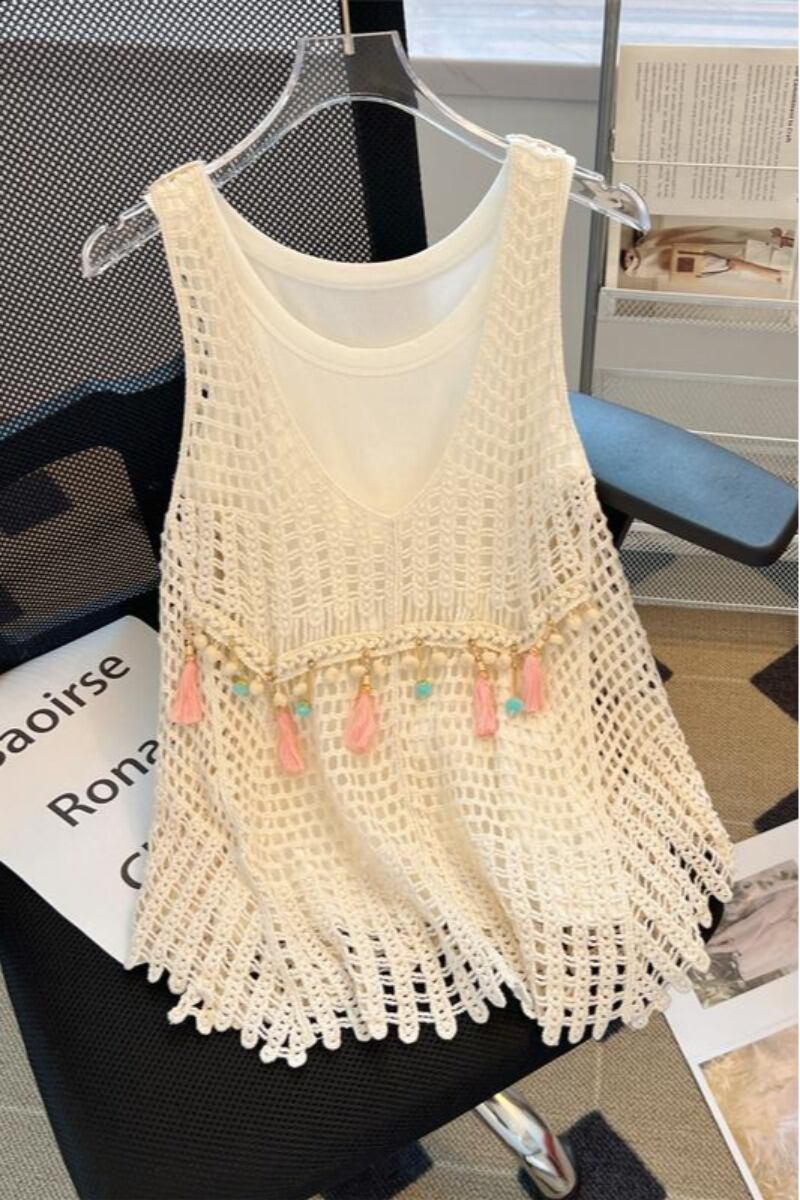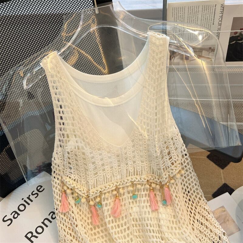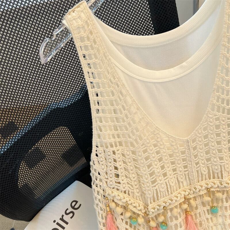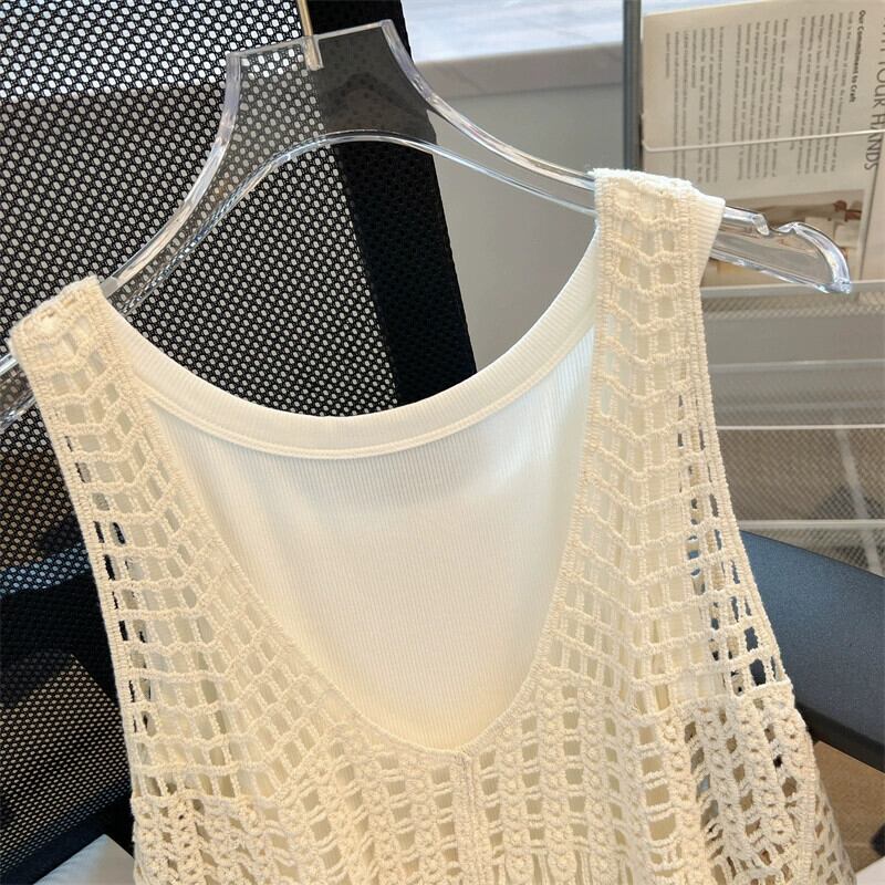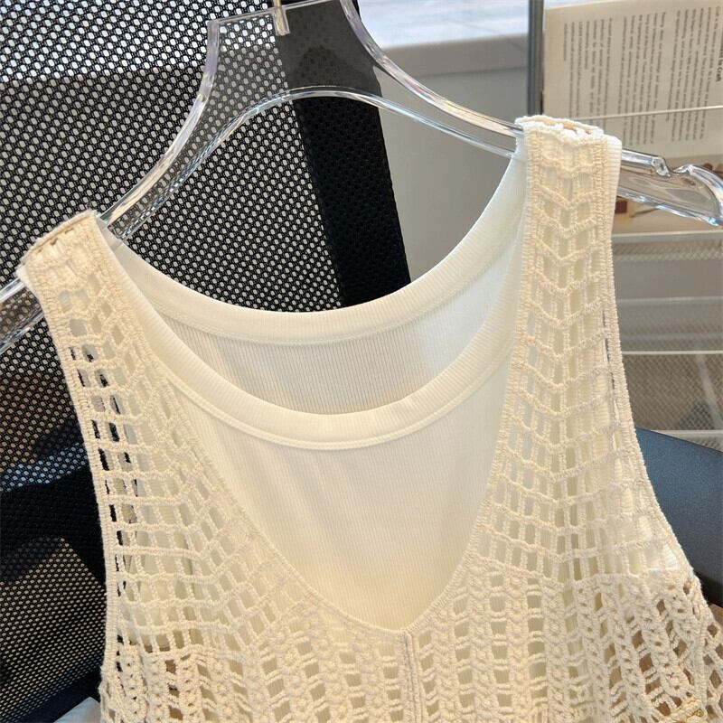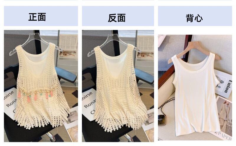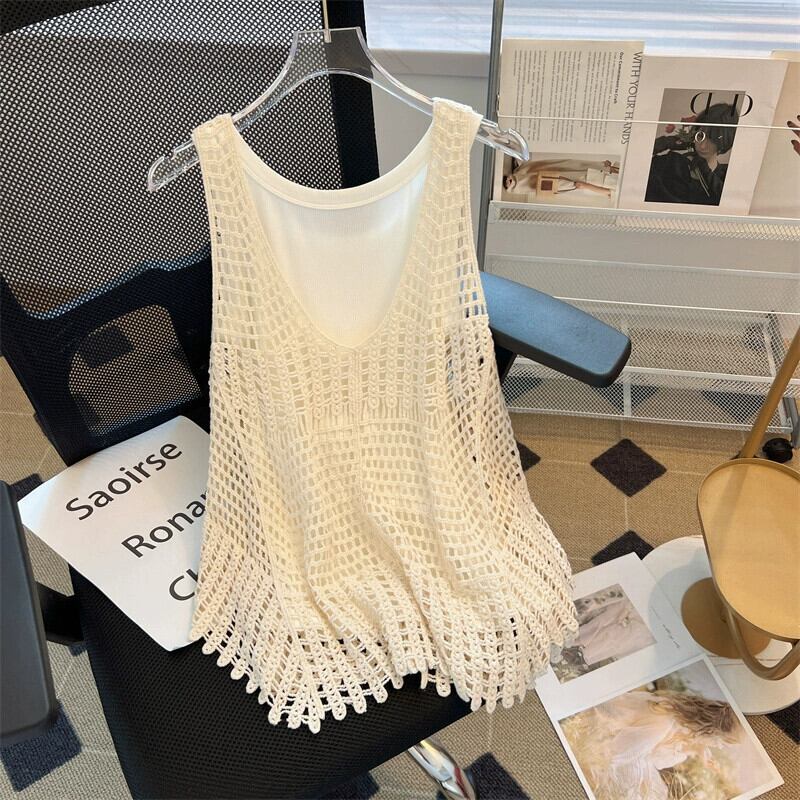 プラスサイズの婦人服 2023 ファットシスター夏新レトロスーツテルニット薄い中空ベスト 2 点セット 大きめサイズ サマー 夏物 8884140199459912