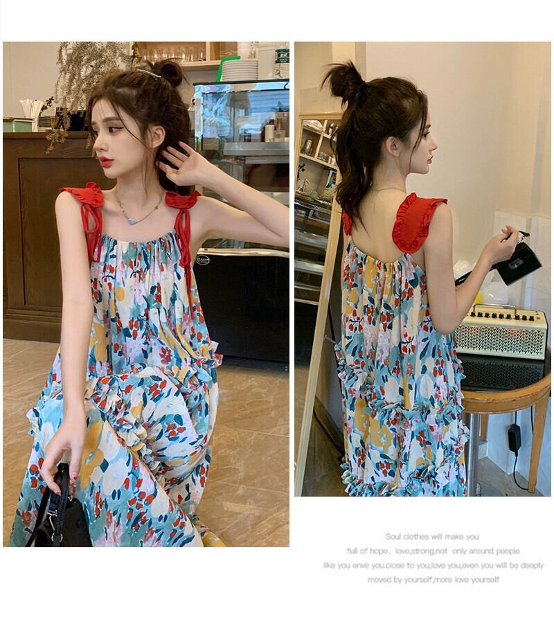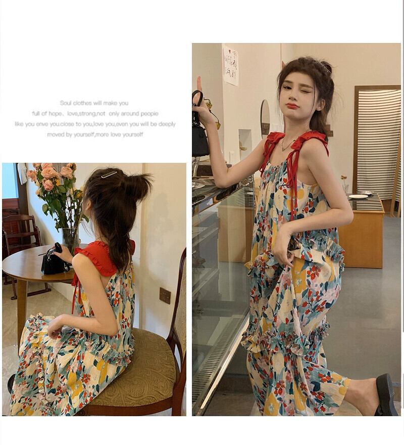 プラスサイズの女性の夏の甘い花柄サスペンダードレス新しい休日ラインスリム A ラインスカート女性ノースリーブドレス 大きめサイズ 大人ガーリー スウィート キュート カジュアル サマー 夏物 Aライン 8884134716797679