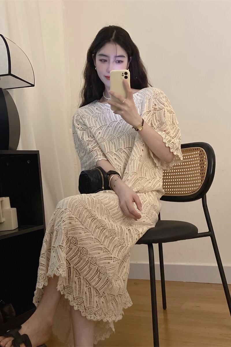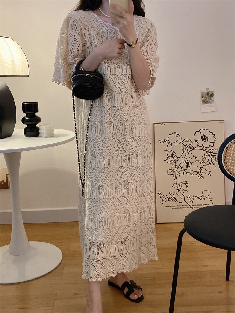 大きいサイズ 2023 夏の新しい気質ハイエンド感覚年齢軽減痩身ロングスカートレトロ怠惰なスタイルのレースのドレス 大きめサイズ サマー 夏物 8884181679246567
