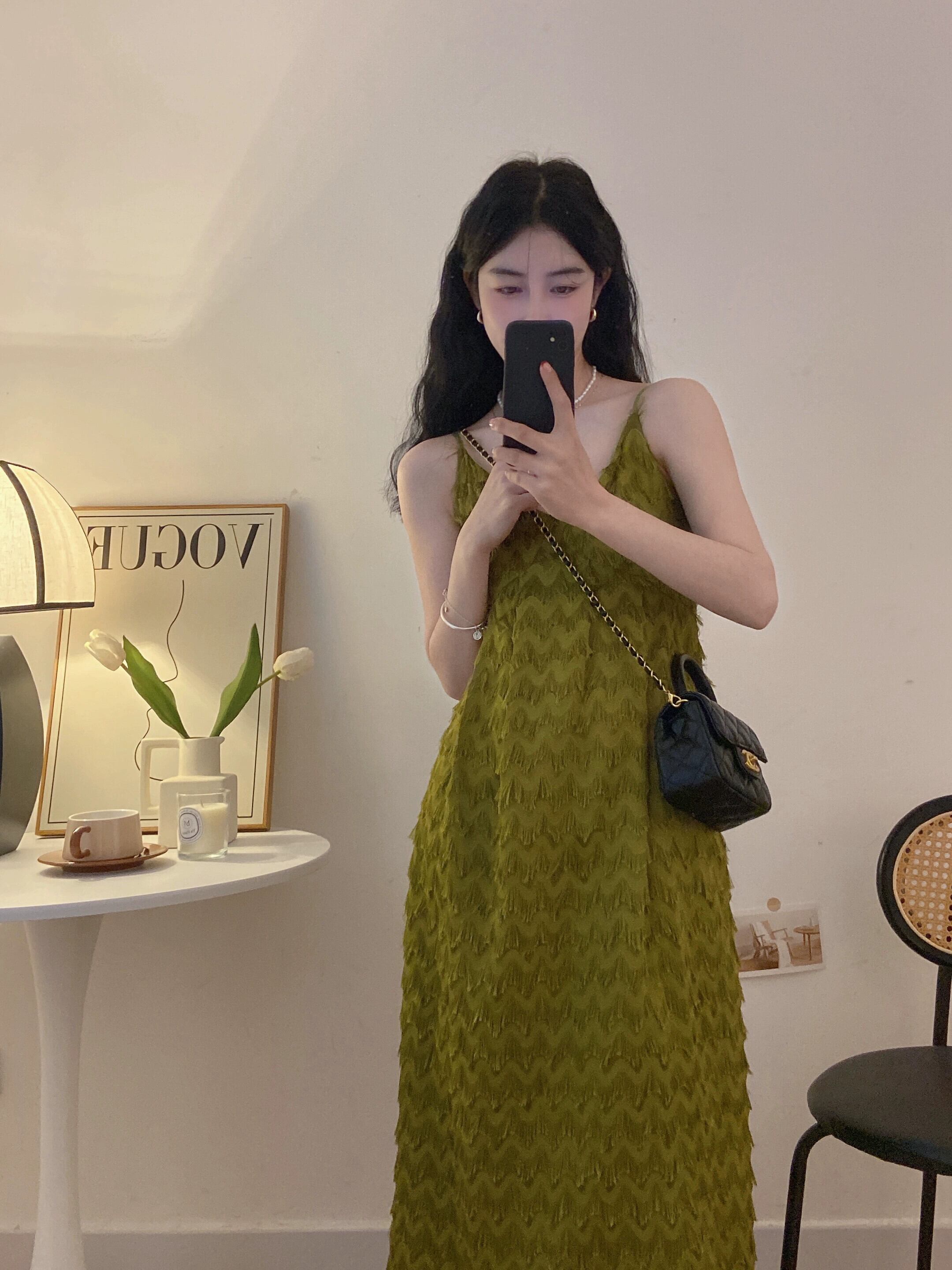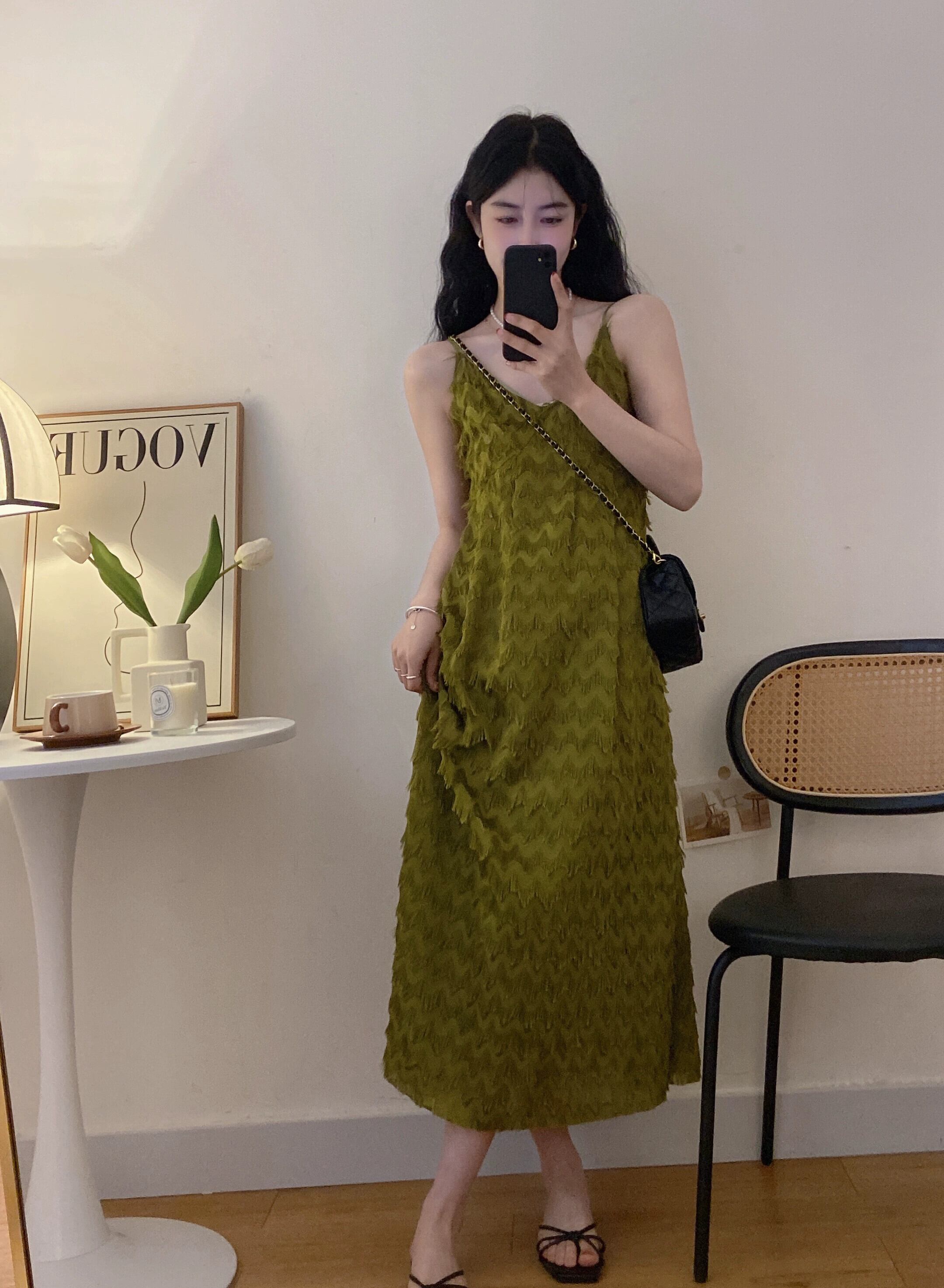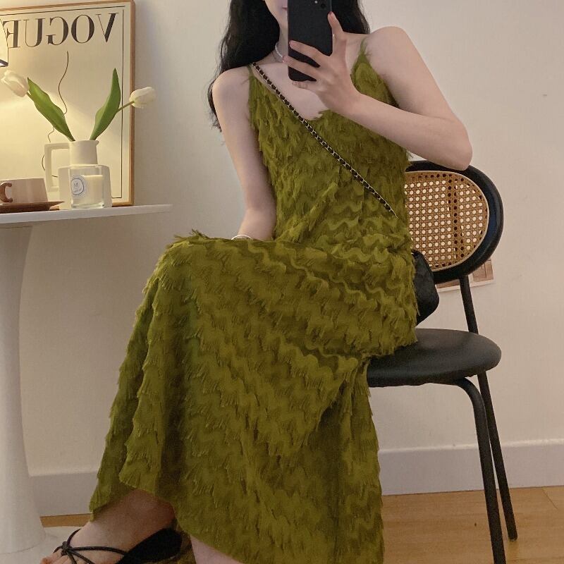 プラスサイズの婦人服 2023 脂肪姉妹夏の新ファッションサスペンダースカートデザイン高度な V ネック気質ドレス 大きめサイズ サマー 夏物 Vネック 8884186309705373