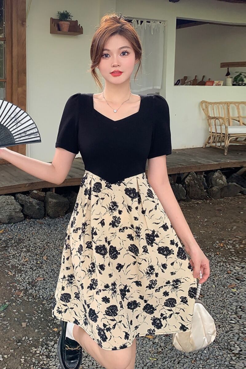 プラスサイズの婦人服 2023 トレンディな夏の新しいスタイル脂肪姉妹ファッション eign スタイルフレンチスカートスプライシング私室ハニースタイルドレス 大きめサイズ サマー 夏物 8884112796931362