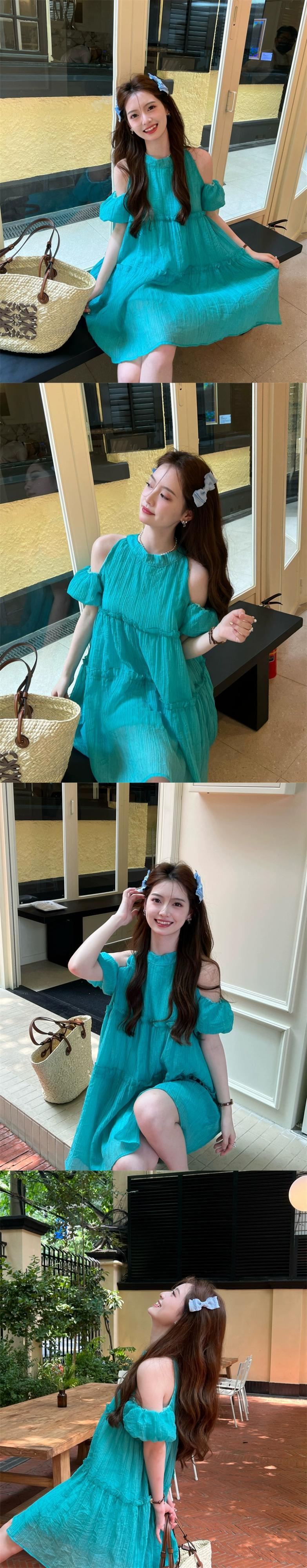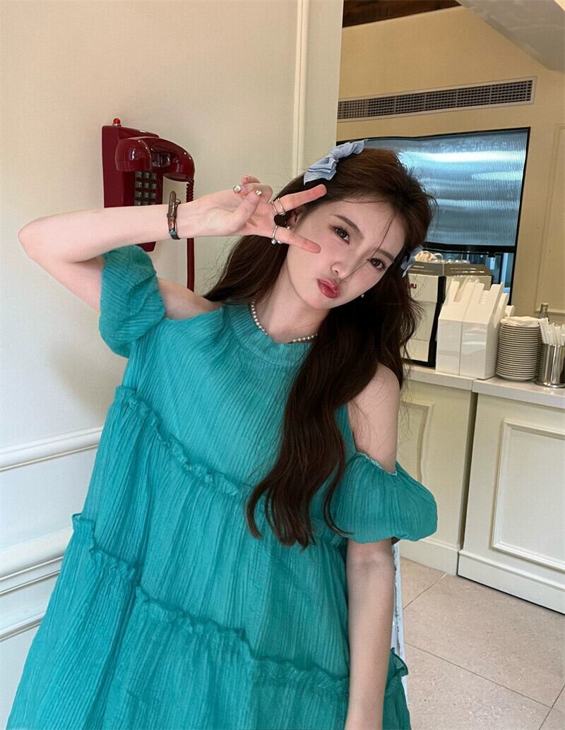 プラスサイズの婦人服 2023 脂肪姉妹夏の新しいストラップレスケーキスカート人形弓ルーズパフスリーブドレス リボン 大きめサイズ サマー 夏物 8884194452639668