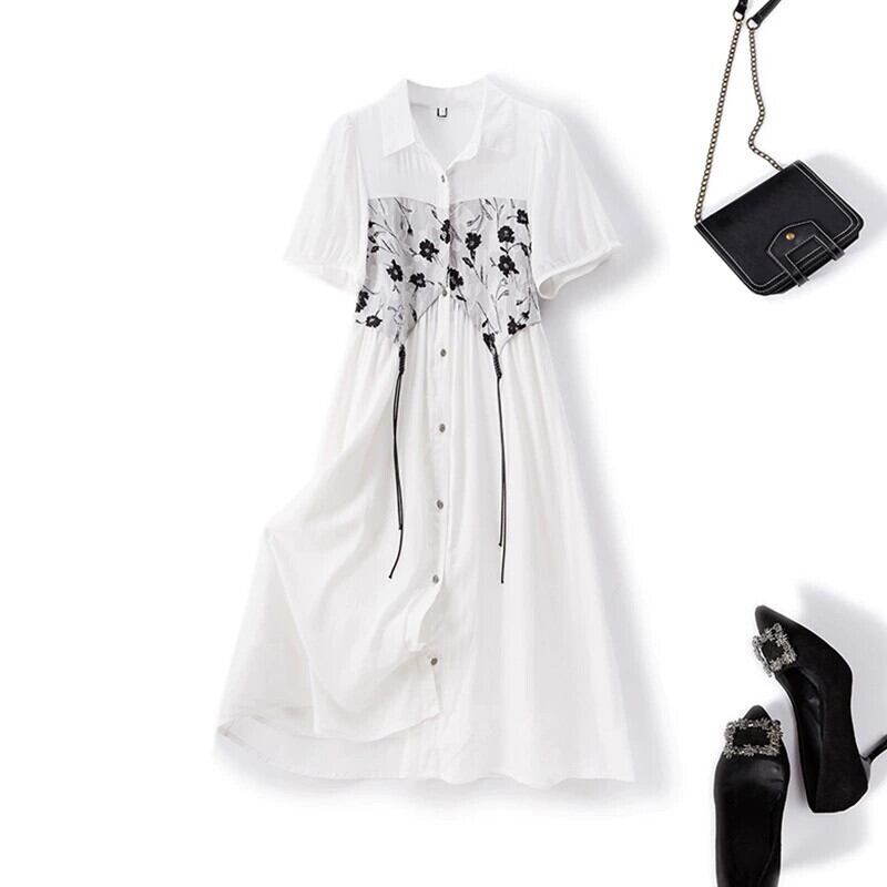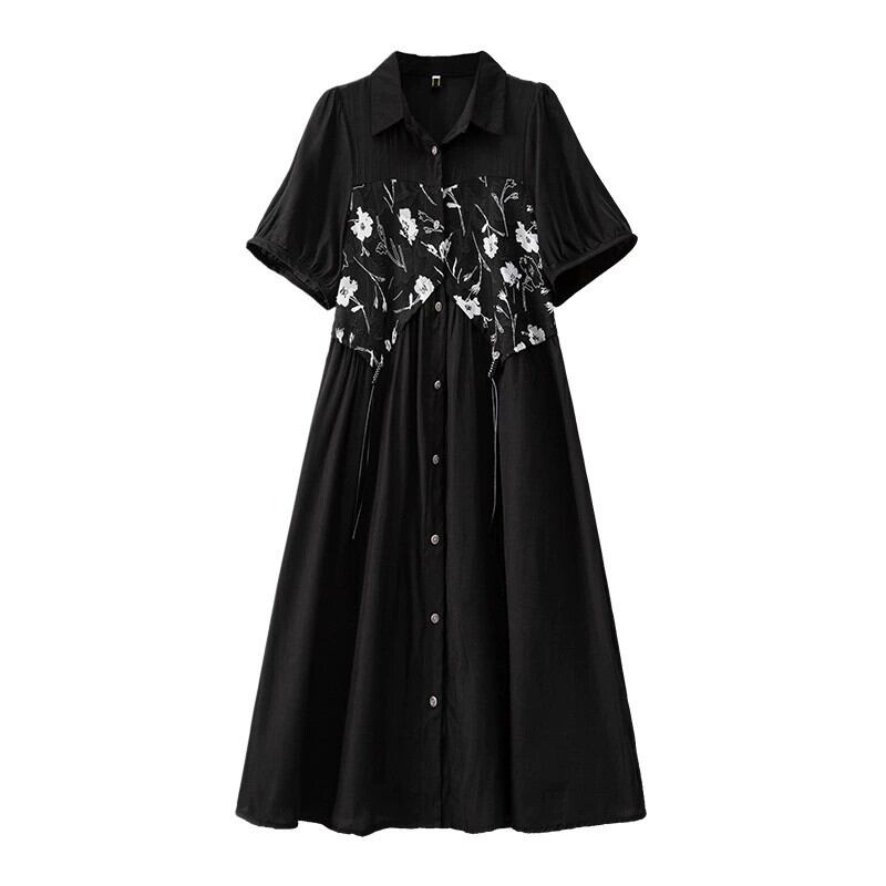 プラスサイズの婦人服 2023 流行の夏の新しいファットシスターファッションハイエンドスカートスプライシング偽ツーピースミッドレングスドレス 大きめサイズ サマー 夏物 8884145927120654