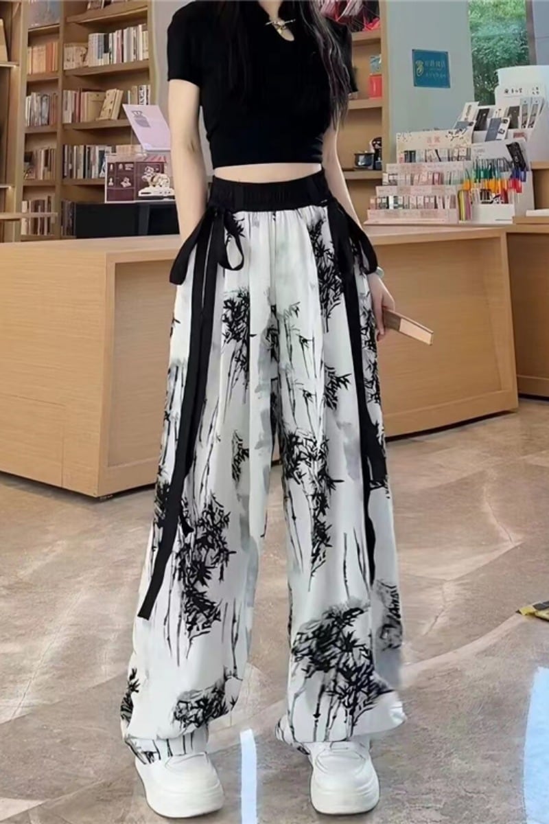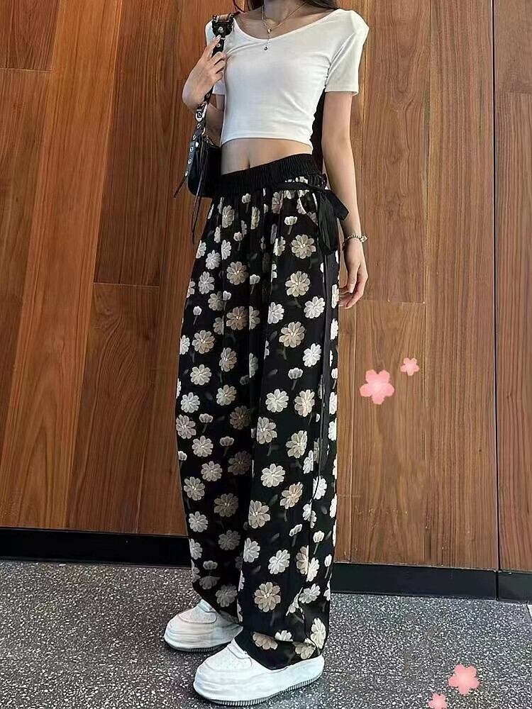 プラスサイズの女性の薄いセクションオールマッチシフォンワイドレッグパンツ 2023 夏スリムカジュアルストリーマーナショナルスタイル垂直ストレートレッグパンツ 大きめサイズ サマー 夏物 8884195713254740