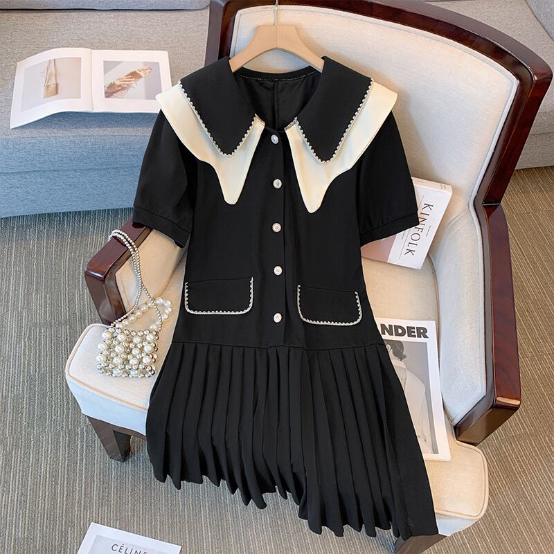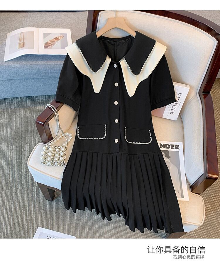 プラスサイズの婦人服 2023 脂肪姉妹夏の新しい人形の襟フレンチプリーツスカートカバー肉と痩身ニッチドレス 大きめサイズ サマー 夏物 8884141604772589