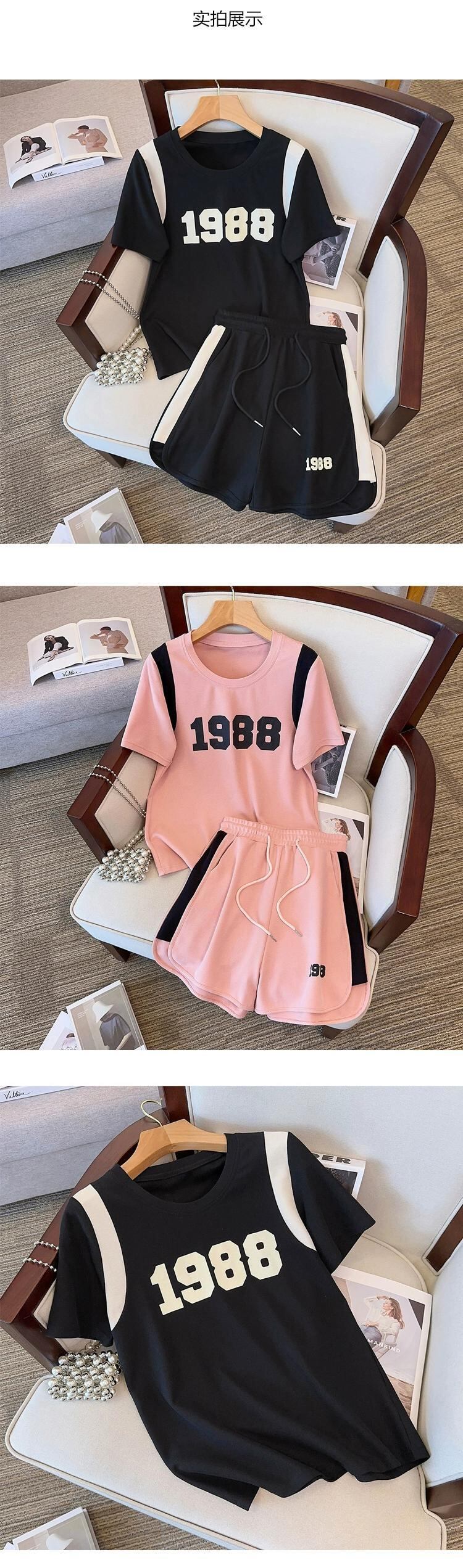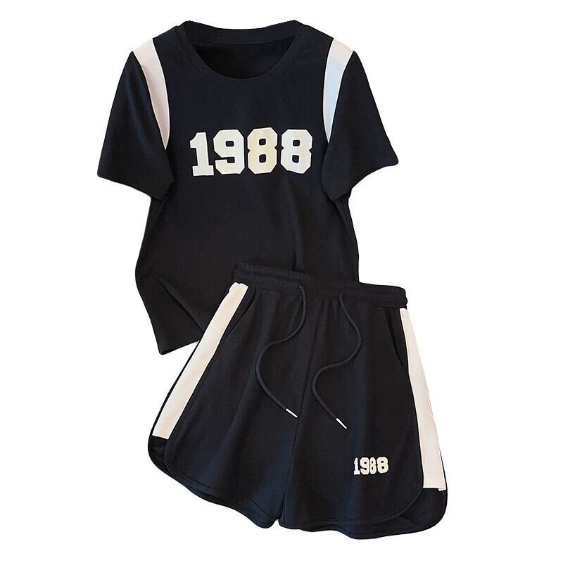 プラスサイズの婦人服 2023 流行の夏の新しいファットシスターカジュアルオールマッチスーツレタープリント Tシャツショーツ 2 点セット 大きめサイズ サマー 夏物 ブルマー 8884173047269962