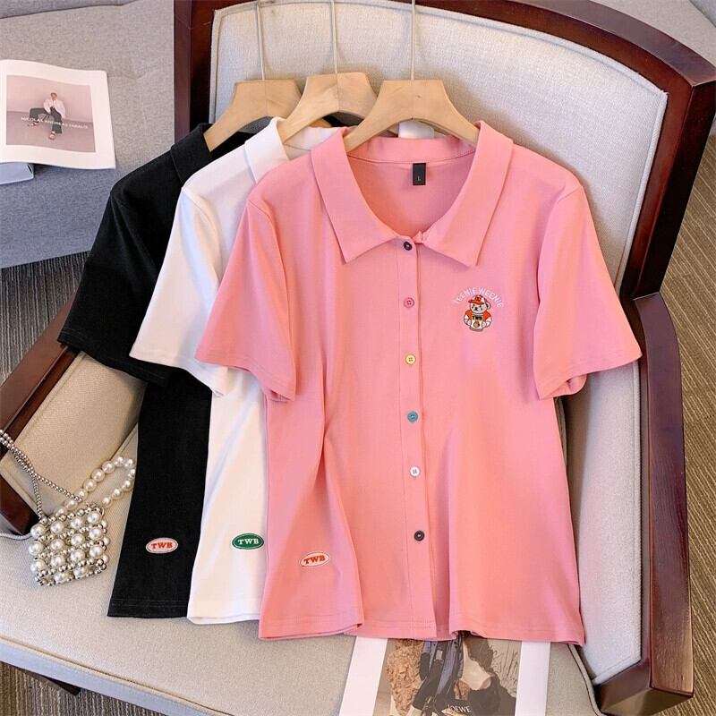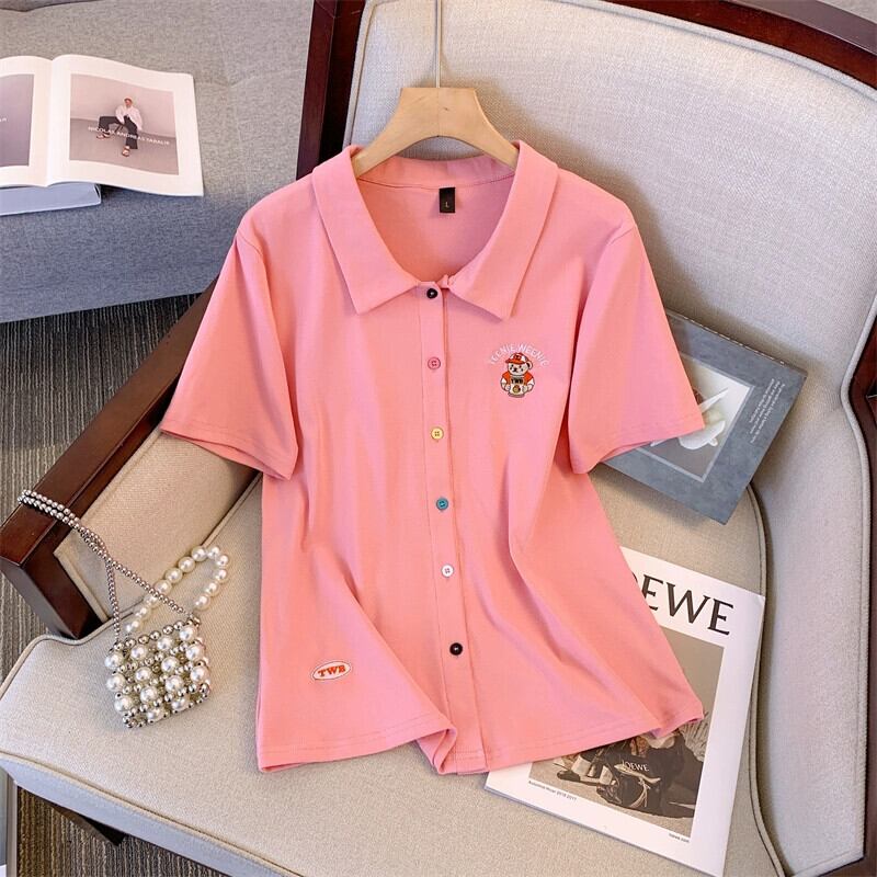 プラスサイズの女性の 2023 夏服ファットカジュアルポロカラーシックな Tシャツ年齢を軽減するルーズな気質半袖トップス 大きめサイズ サマー 夏物 8884111633872361