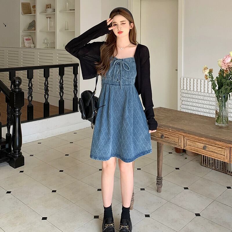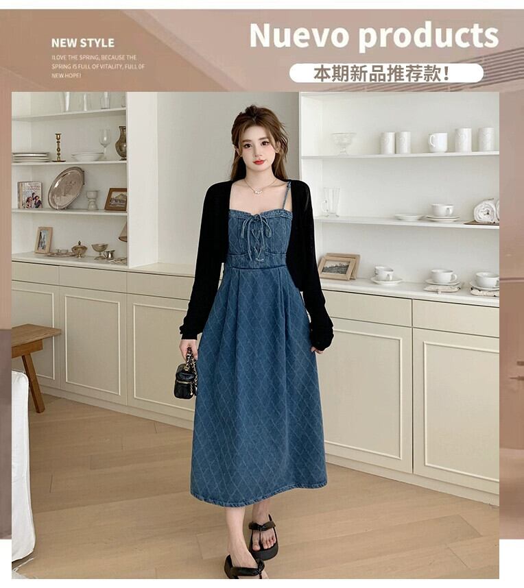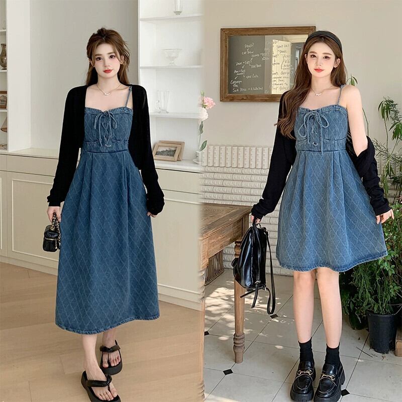 プラスサイズの女性の 2023 夏服ファット、スリムなデザイン、デニム サスペンダー スカート、長袖カーディガン トップ、2 点セット ロング 大きめサイズ サマー 夏物 8884183382711712