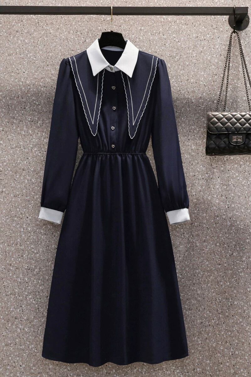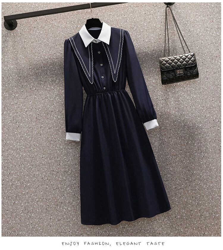 プラスサイズの婦人服 2023 流行の秋の新しい脂肪痩身長袖フレンチドレスハイエンドニッチオールマッチスカート ロング 大きめサイズ オータム 秋物 8884191868116216