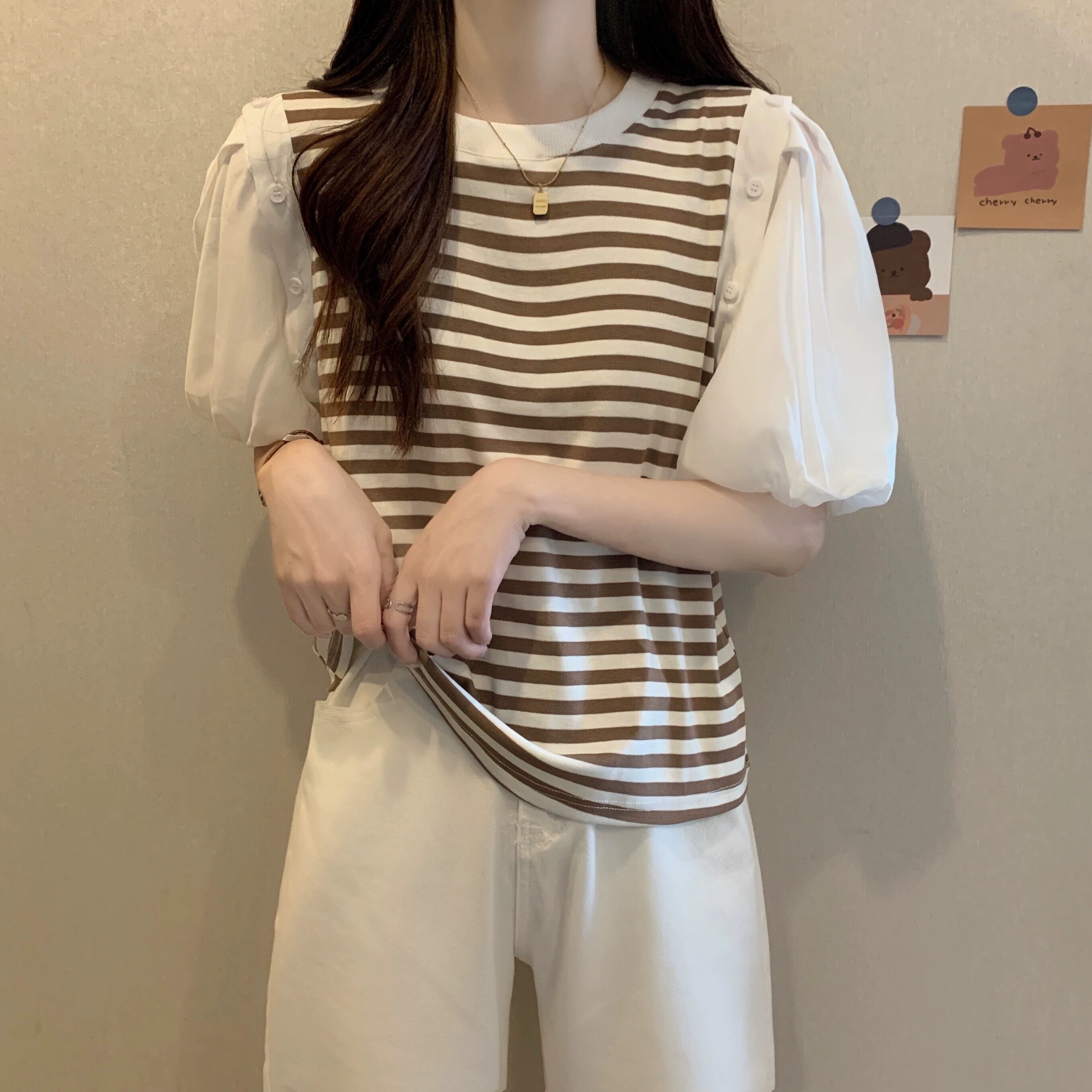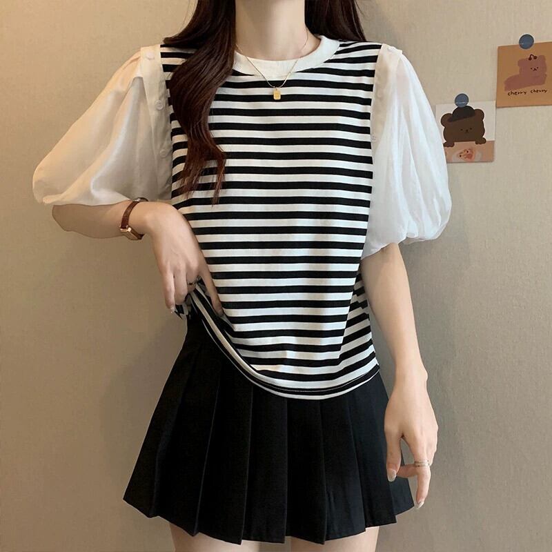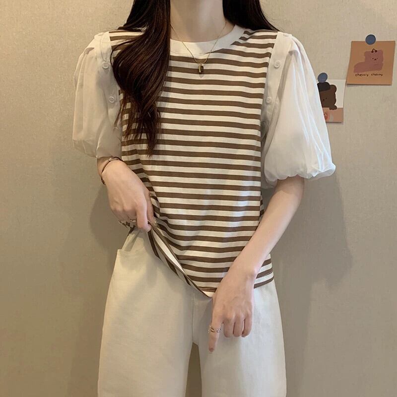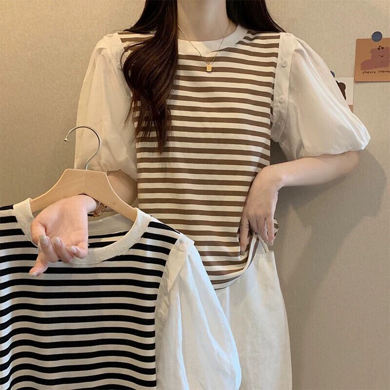 プラスサイズのレディース 2023 夏服、太くてファッショナブルで多用途なデザインの T シャツ、お腹の上部をカバーするランタンスリーブ付き 大きめサイズ サマー 夏物 Tシャツ 8884126058137285