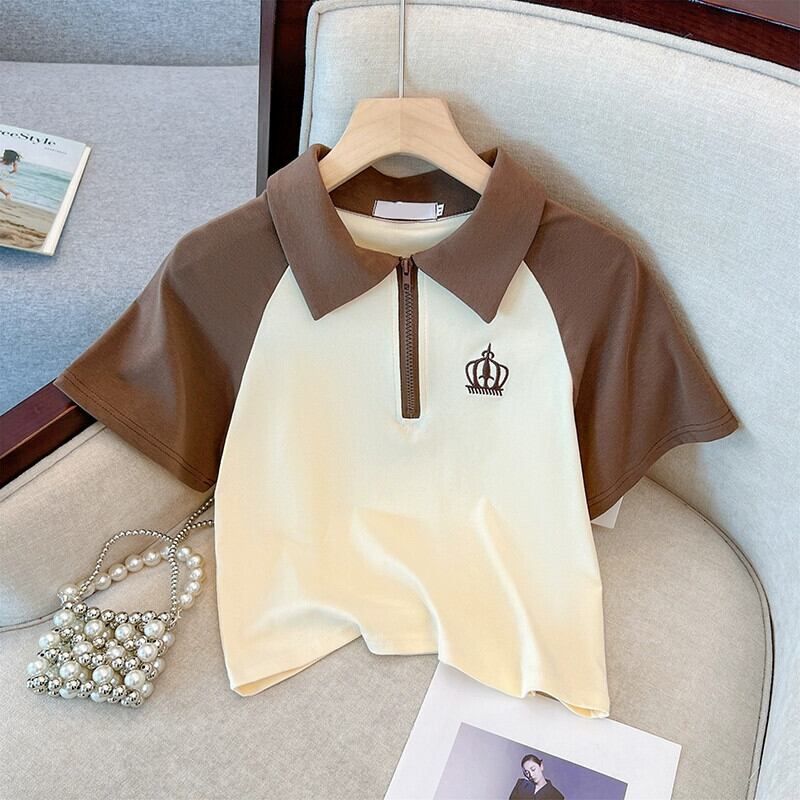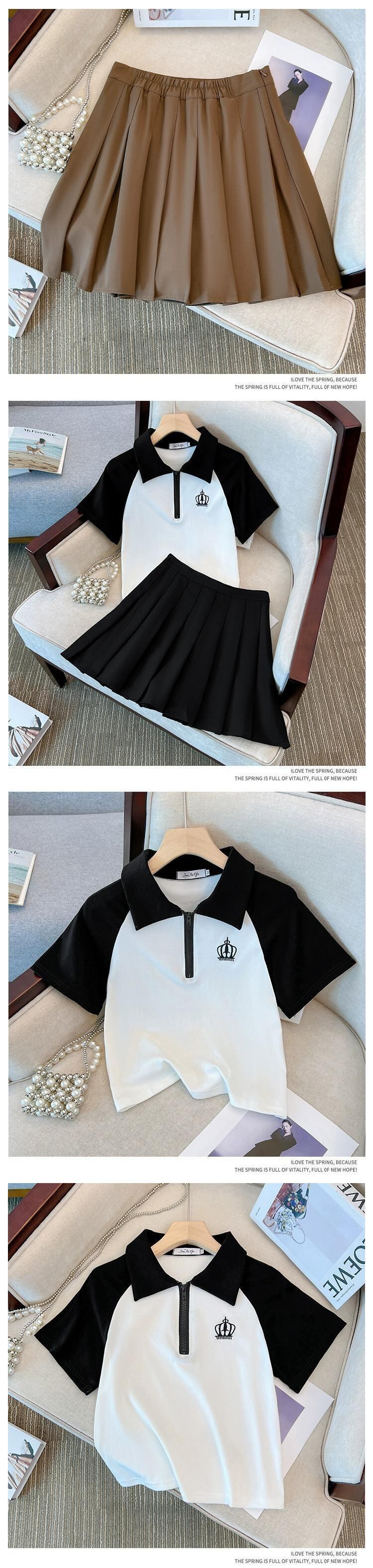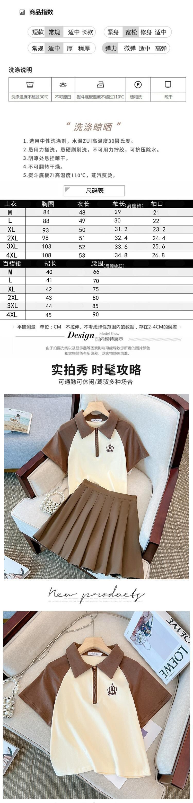 プラスサイズの婦人服 2023 脂肪姉妹夏服新しいカジュアルスーツ配色ポロカラー Tシャツプリーツスカート 2 点セット 大きめサイズ サマー 夏物 8884153259699197