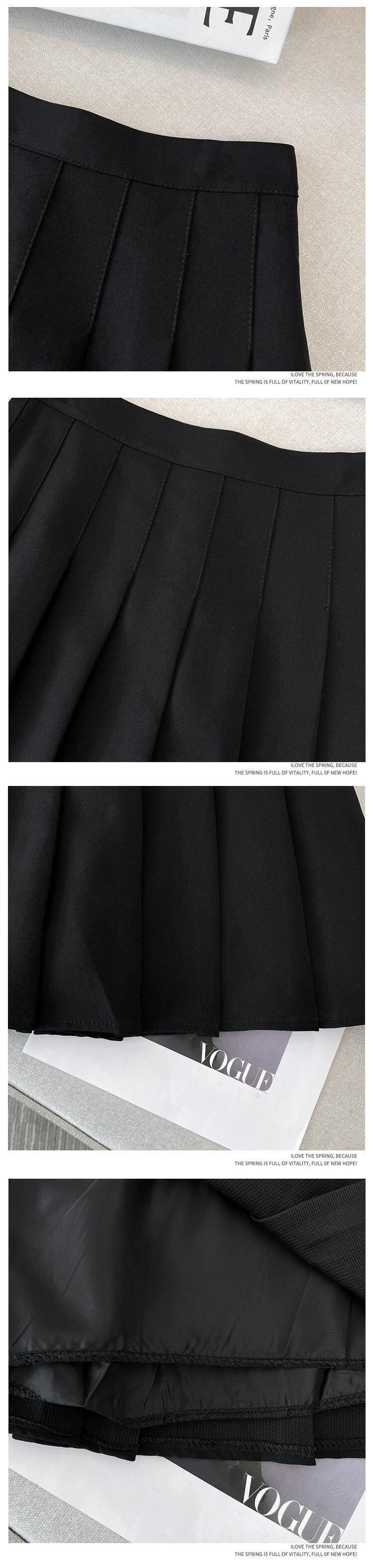 色:ブラックプリーツスカート,コーヒーカラーのプリーツスカート,ホワイトT,アプリコットT