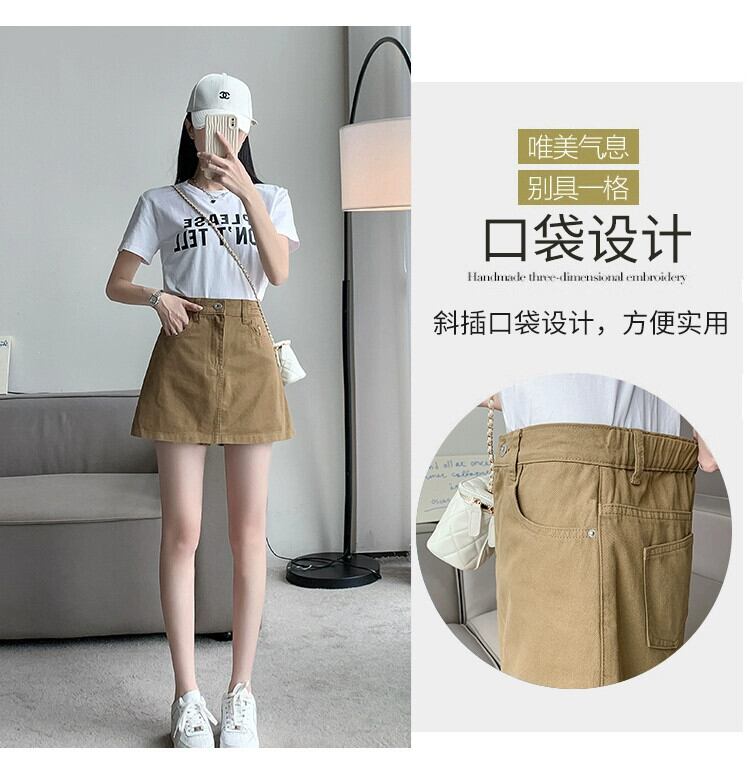 プラスサイズの婦人服 2023 脂肪姉妹夏の新スタイルルーズハイウエスト弾性デニムショートスカートパンツワイドレッグショーツ A ラインスカート ハイウェスト エラスティック 伸縮 大きめサイズ サマー 夏物 ブルマー Aライン ワイドパンツ 8884125689613124