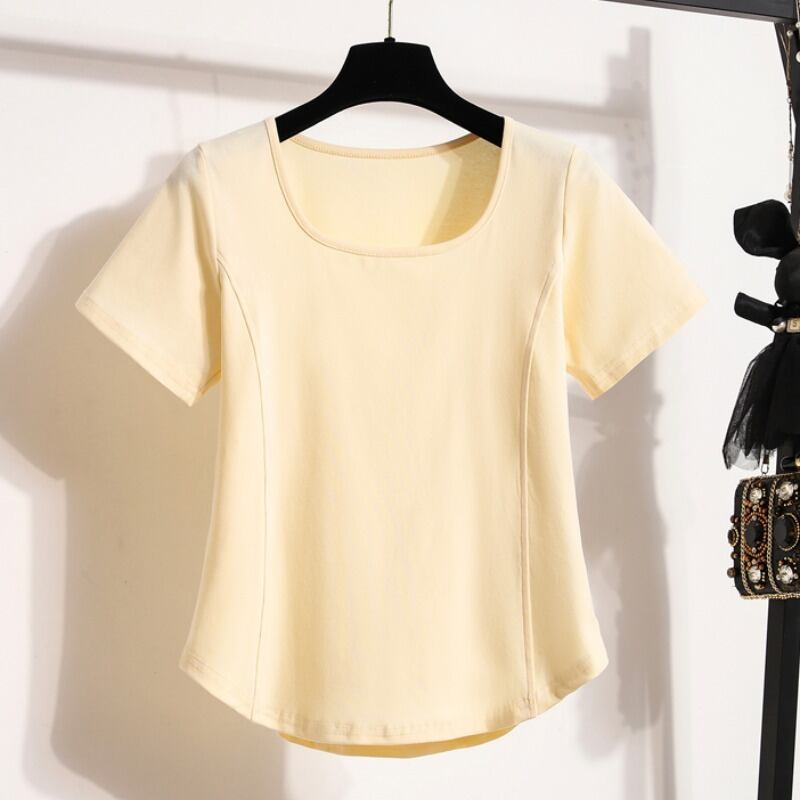 プラスサイズの女性の 2023 新しい夏スタイルイレギュラーヘム半袖 T シャツニッチデザインの痩身ボトムトップ 大きめサイズ サマー 夏物 Tシャツ 8884155880707038