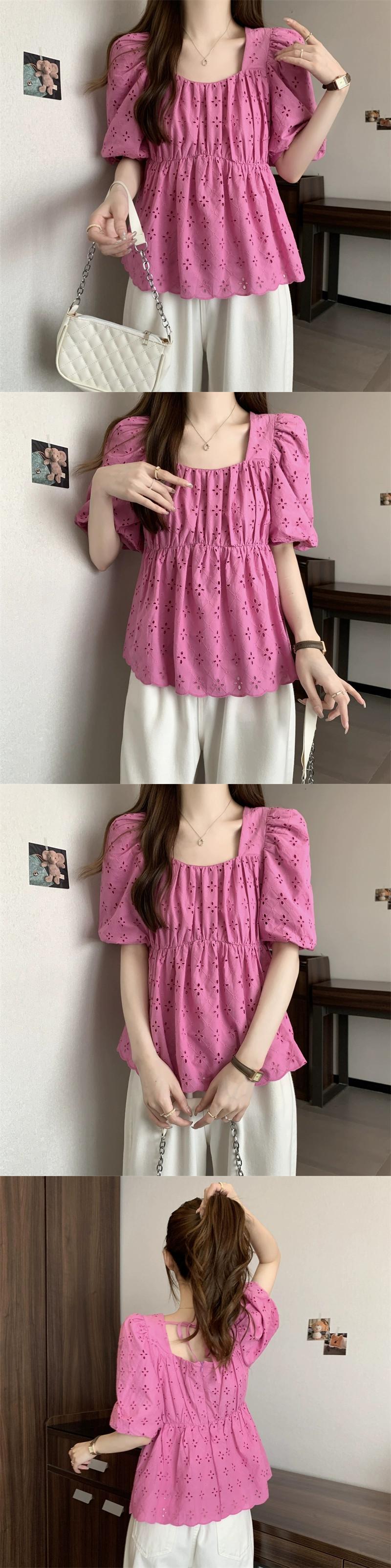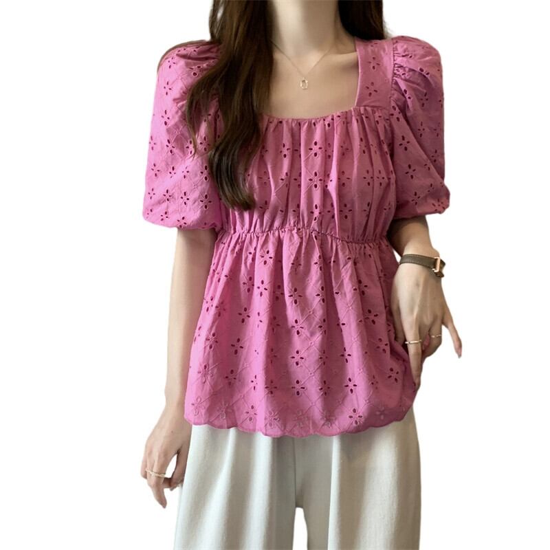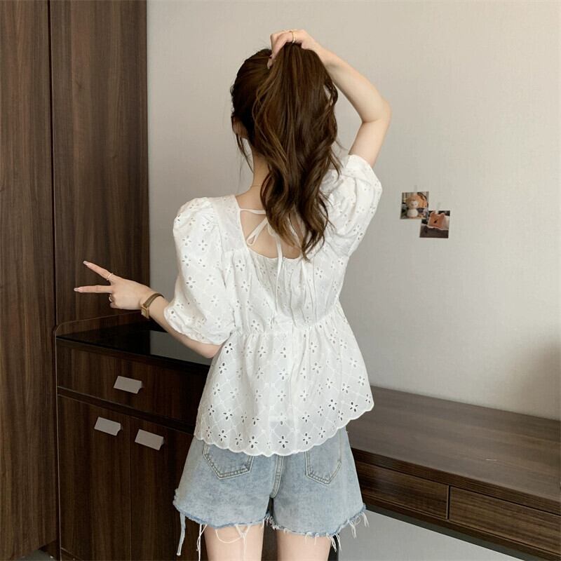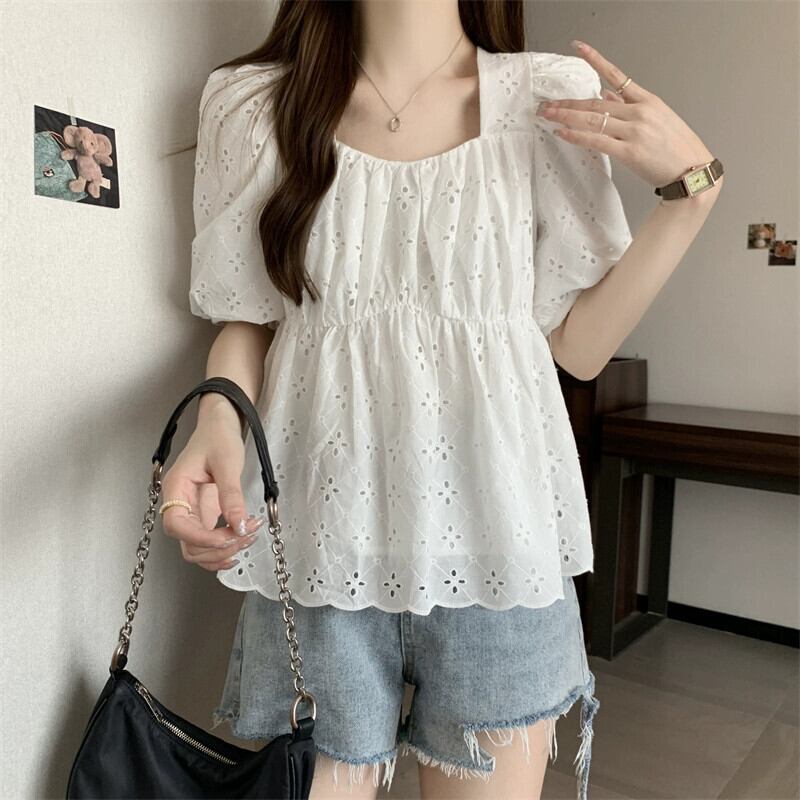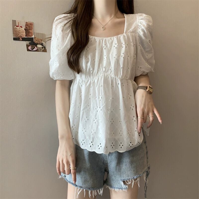 プラスサイズの女性の 2023 ファットシスター夏パフスリーブシャツトップニッチフレンチシックな小さなシャツ 大きめサイズ サマー 夏物 8884180601134980